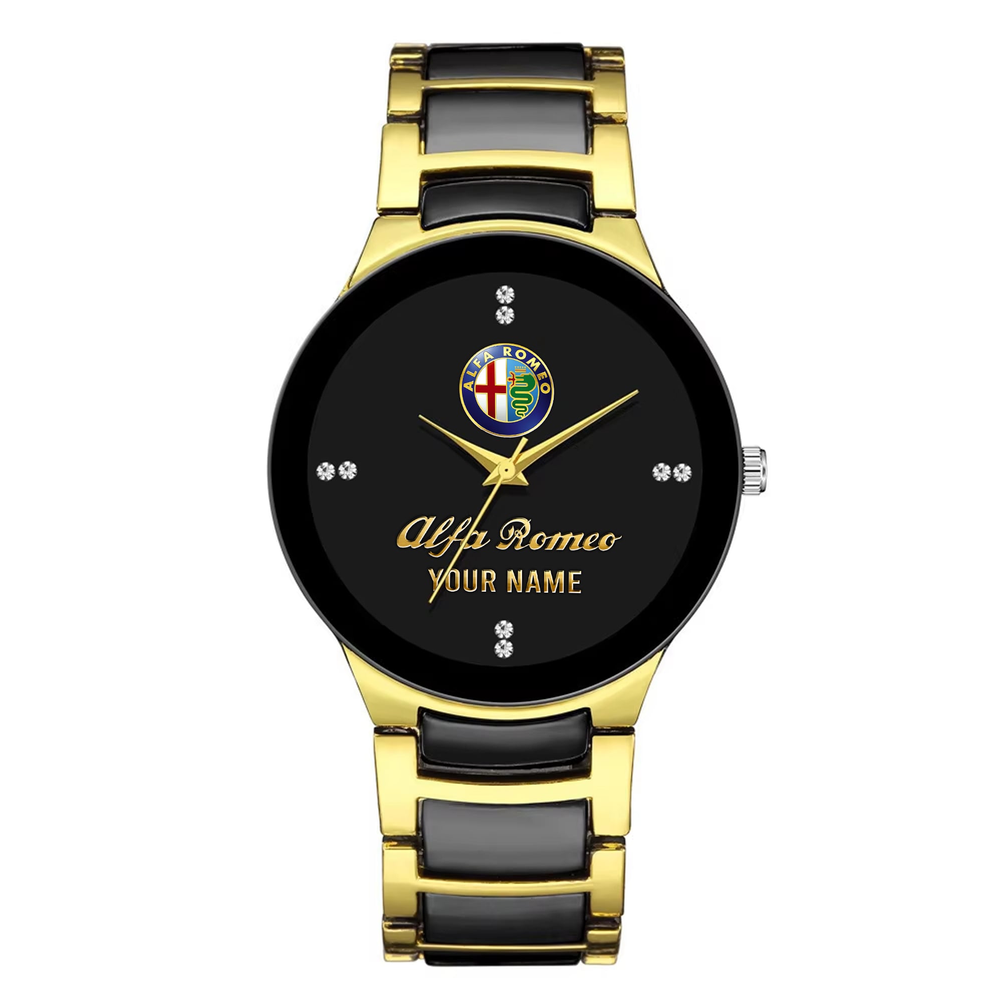 With the launch of the exclusive Made-to-Order service, you can make your watch unique by not only having your special Alfa Romeo Emblem but also your Name printed on the watch. Elevate your style with our custom watches featuring your favorite car logo. Meticulously crafted for durability and water resistance, these watches are the perfect item for daily use. Discover the ultimate combination of luxury, utility, and personalization!