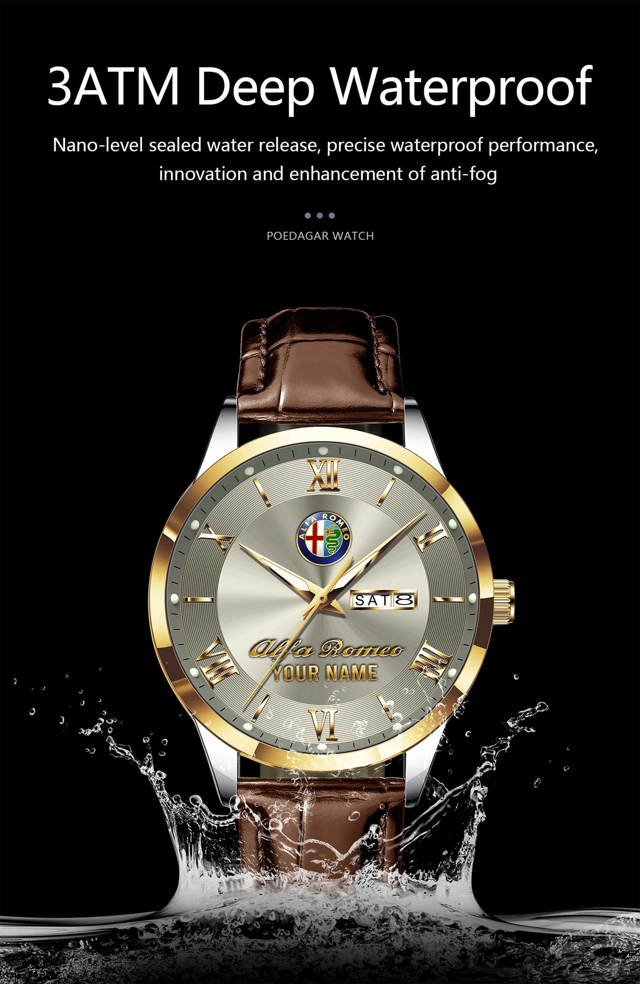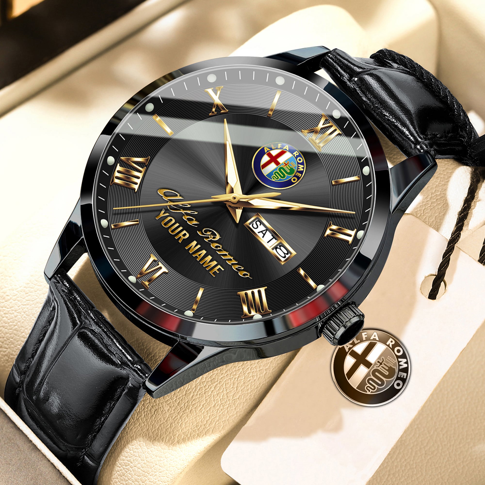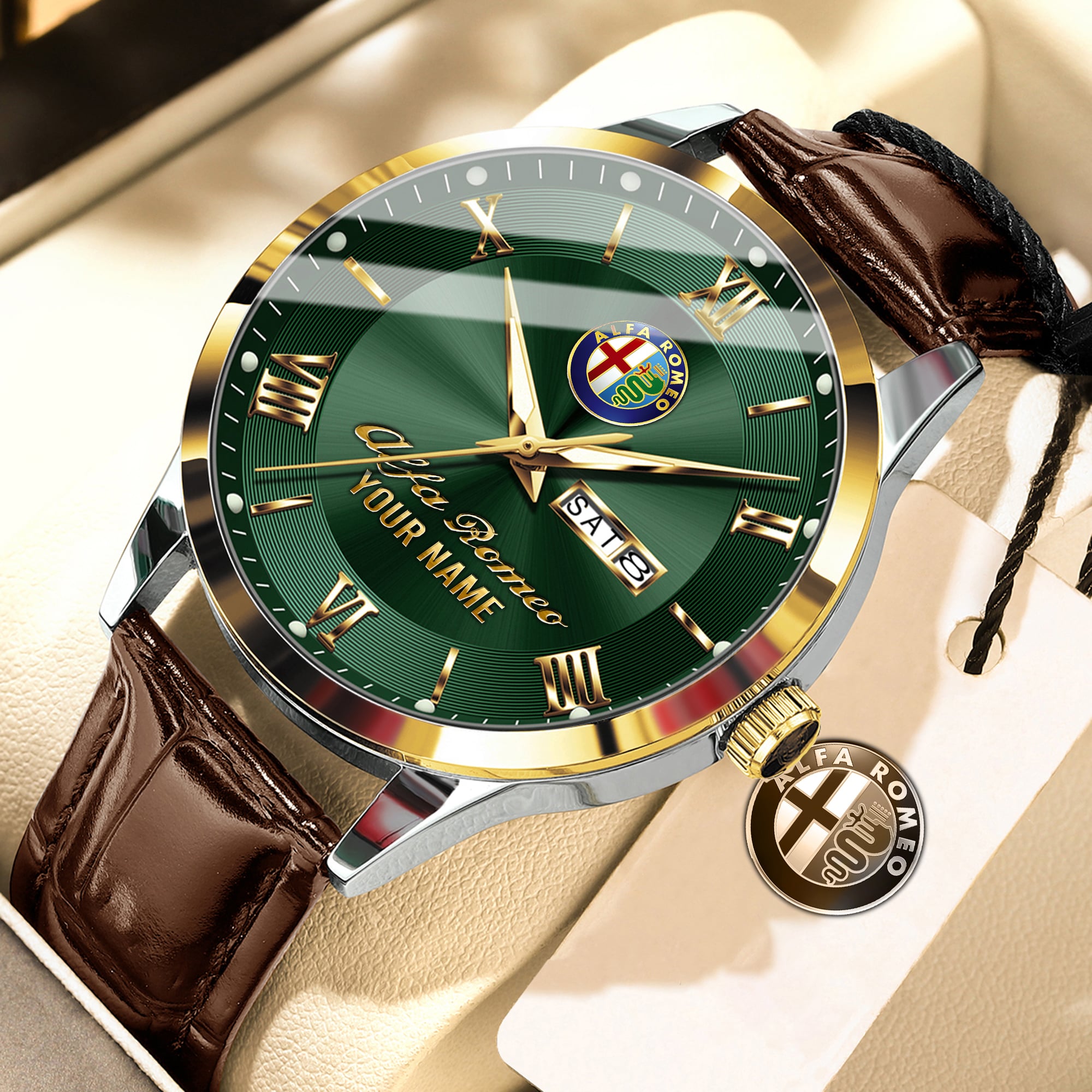 With the launch of the exclusive Made-to-Order service, you can make your watch unique by having your special Alfa Romeo Emblem printed on the watch. Elevate your style with our custom watches featuring your favorite car logo. Meticulously crafted for durability and water resistance, these watches are the perfect item for daily use. Discover the ultimate combination of luxury, utility, and personalization!