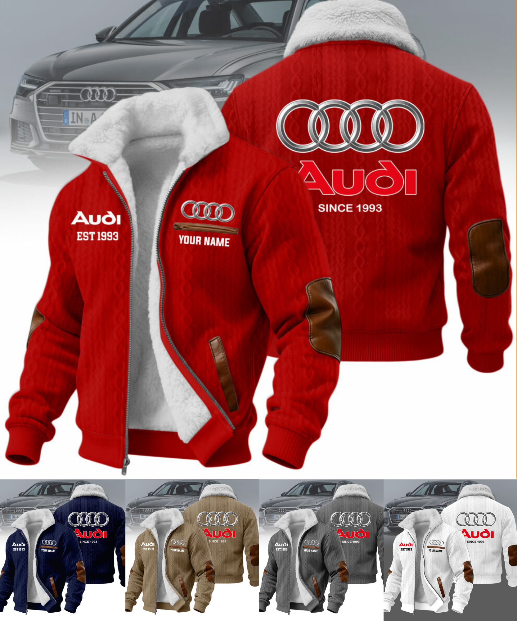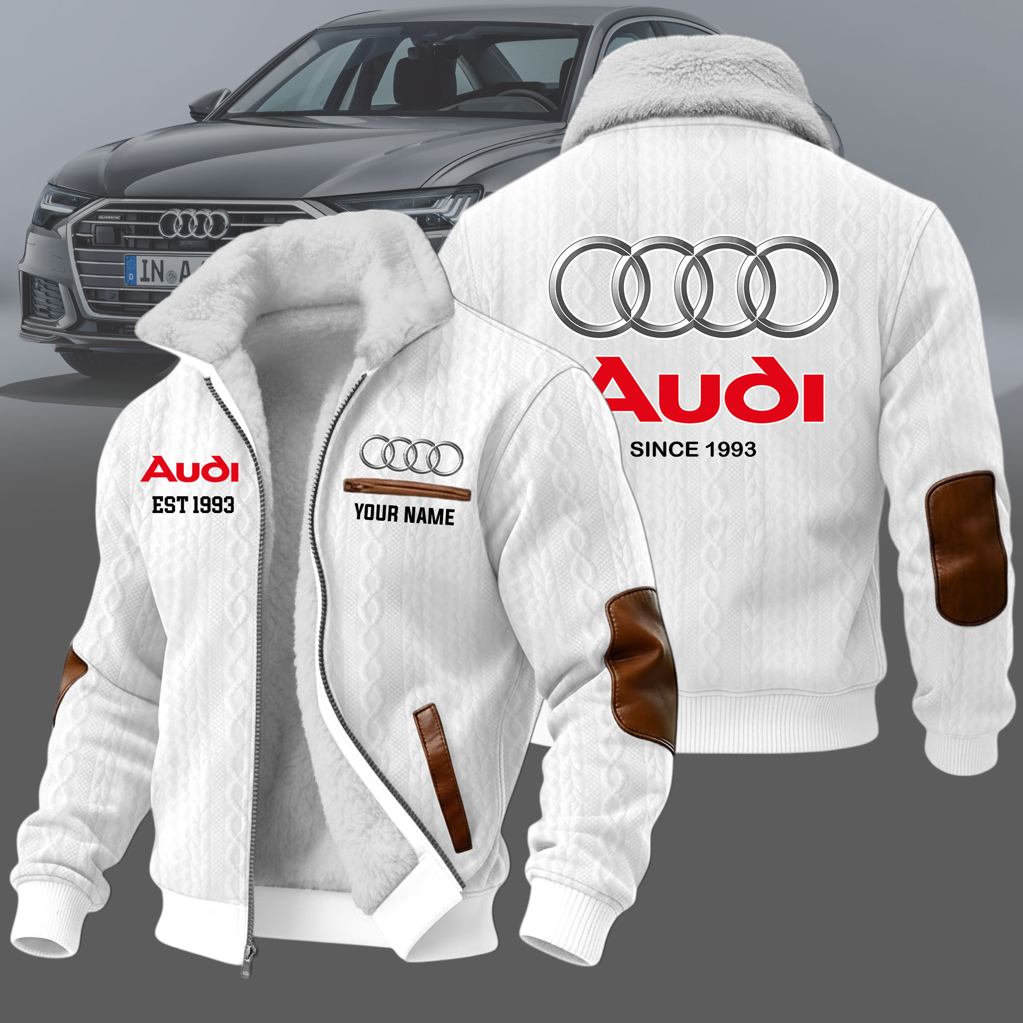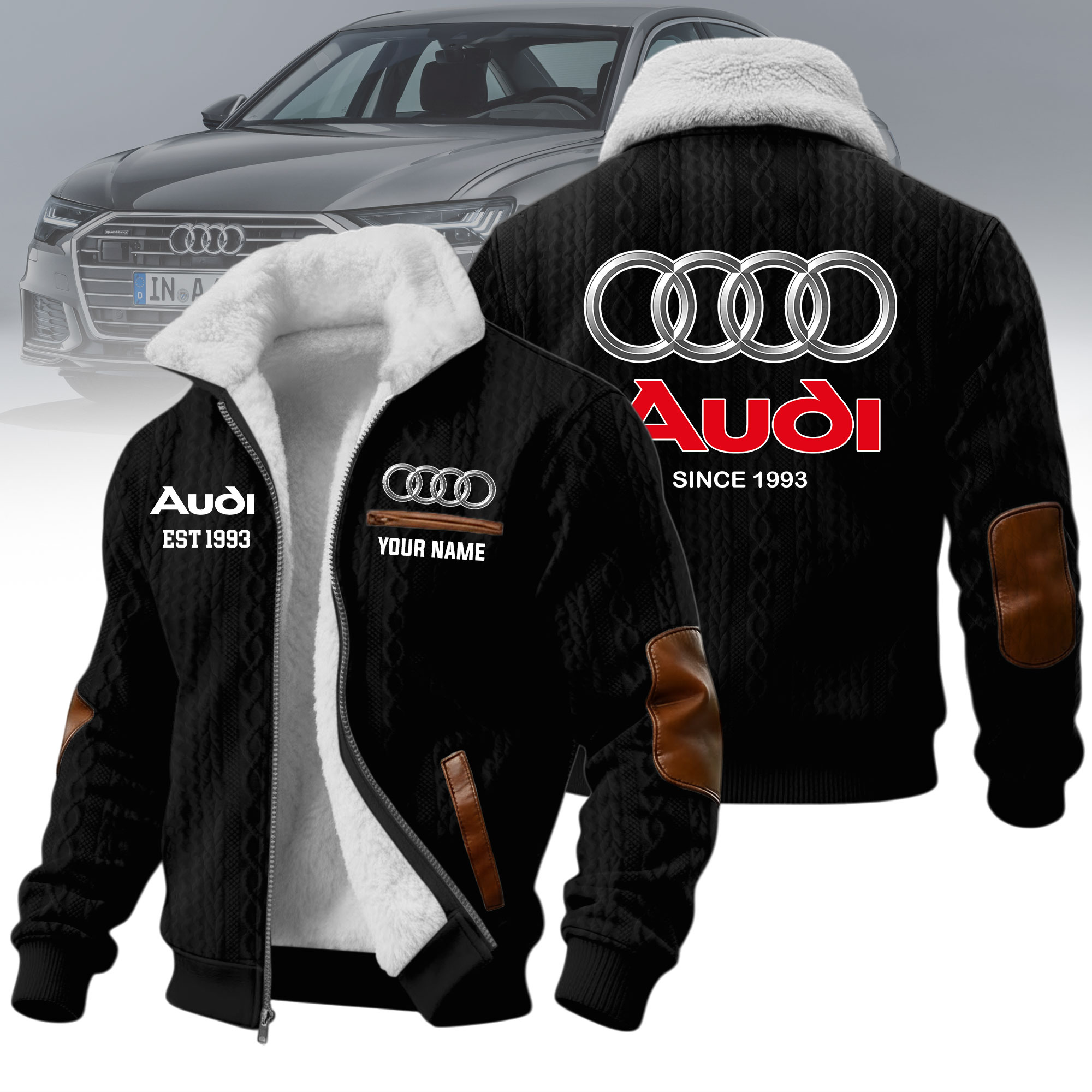 Hi there!! Are you looking at our Audi Fleece Jacket. These Fleece Jacket are unique, made with love, and they are perfect accessories for your outfit. The Audi Emblem on the Fleece Jacket makes it a perfect item for any Audi Lovers.