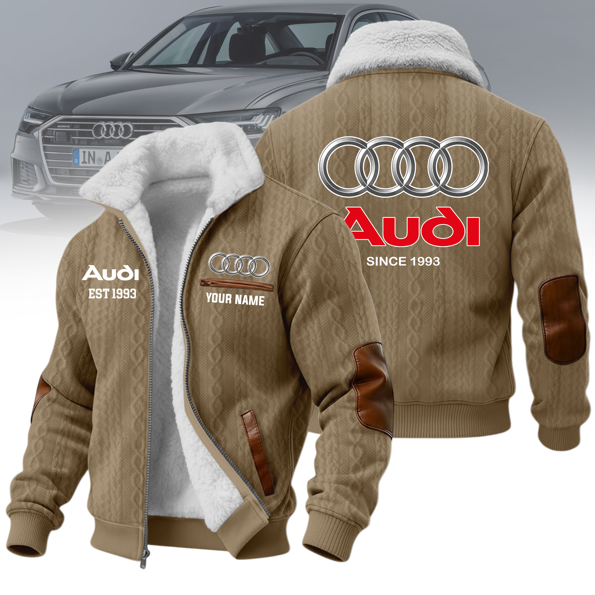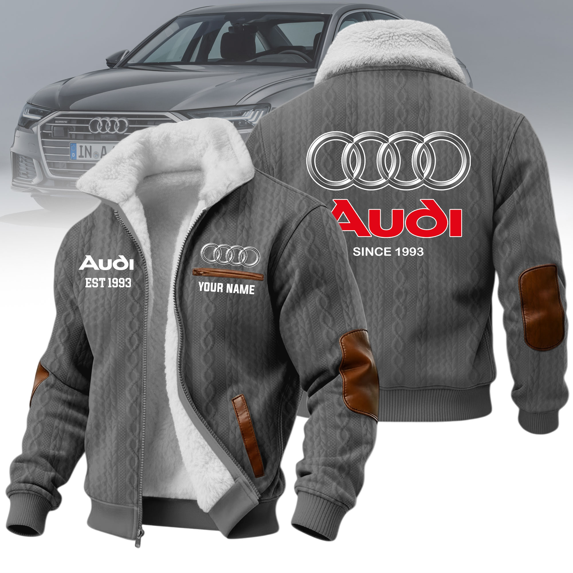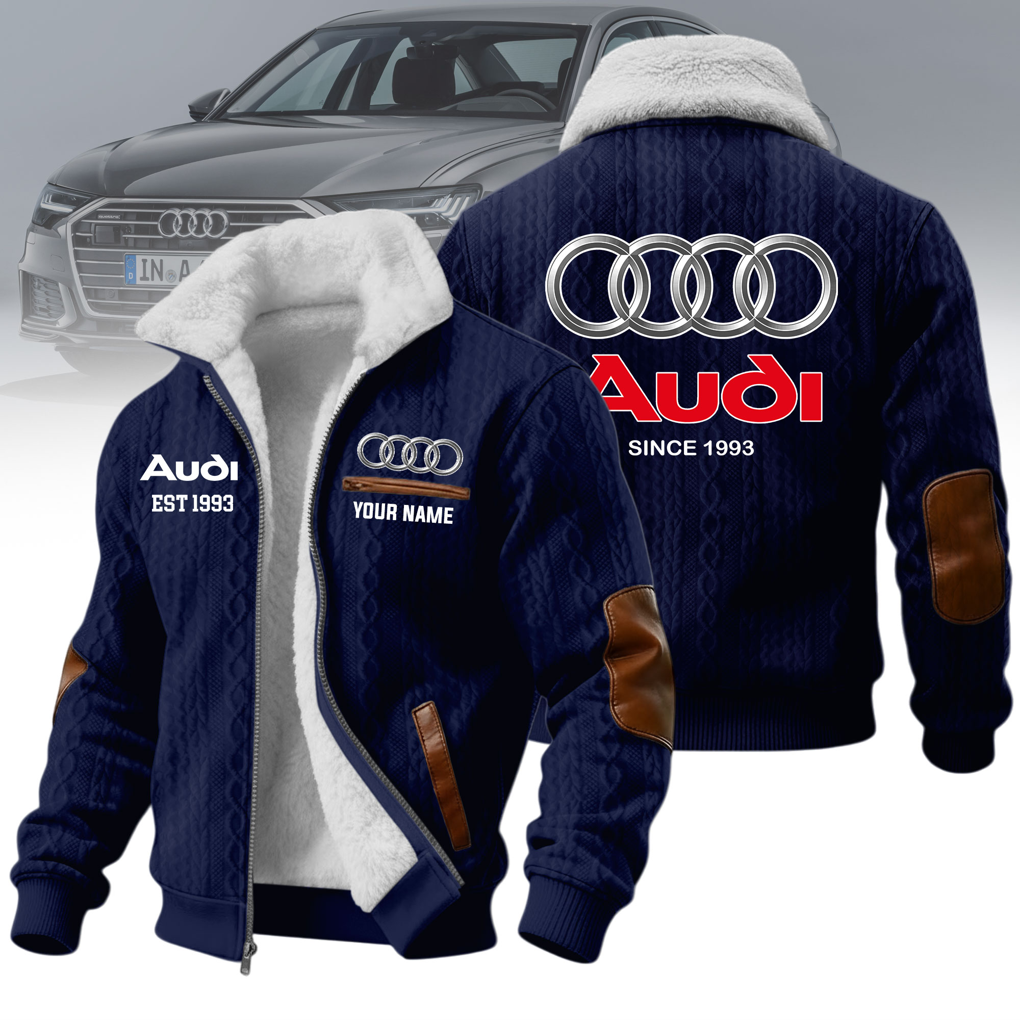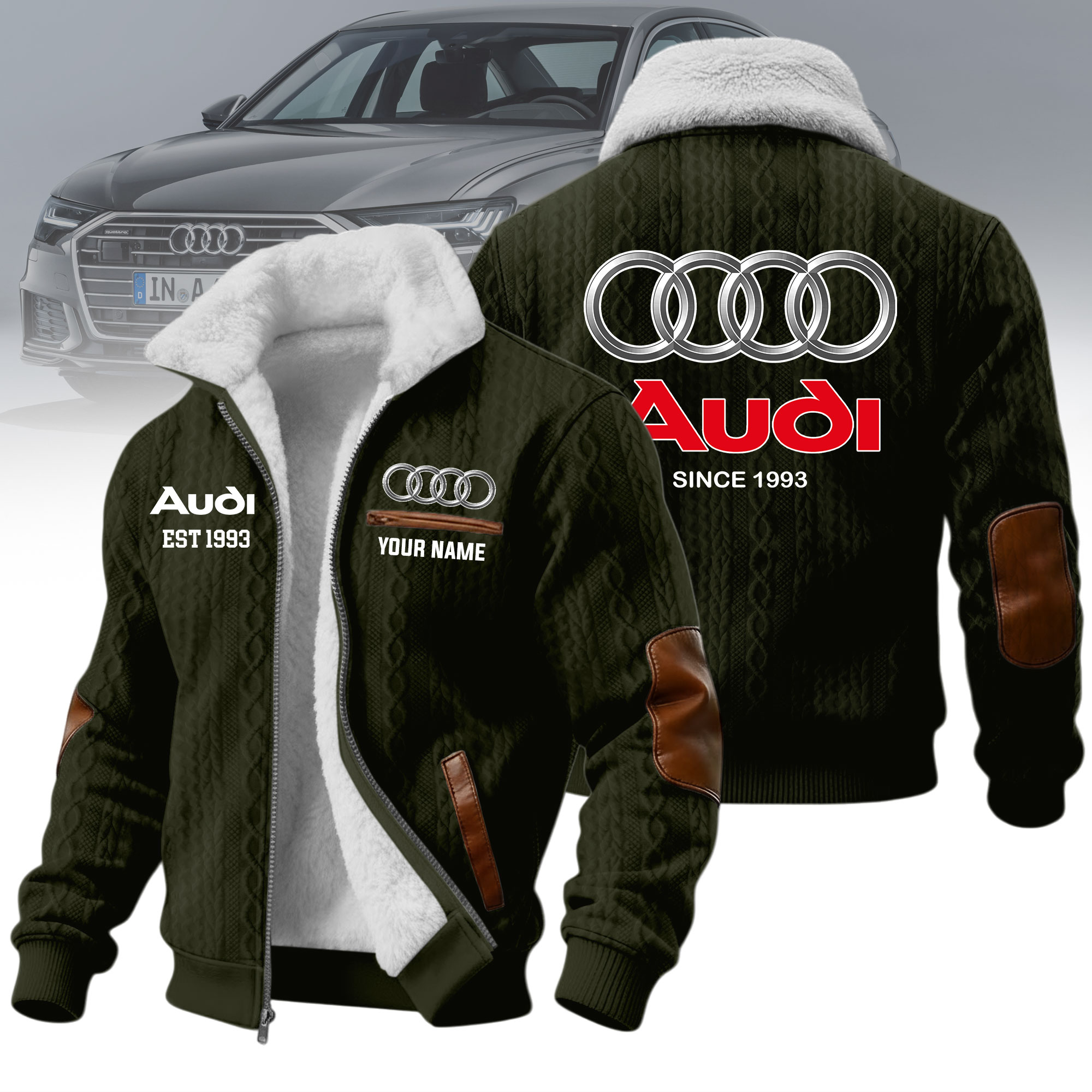 Hi there!! Are you looking at our Audi Fleece Jacket. These Fleece Jacket are unique, made with love, and they are perfect accessories for your outfit. The Audi Emblem on the Fleece Jacket makes it a perfect item for any Audi Lovers.