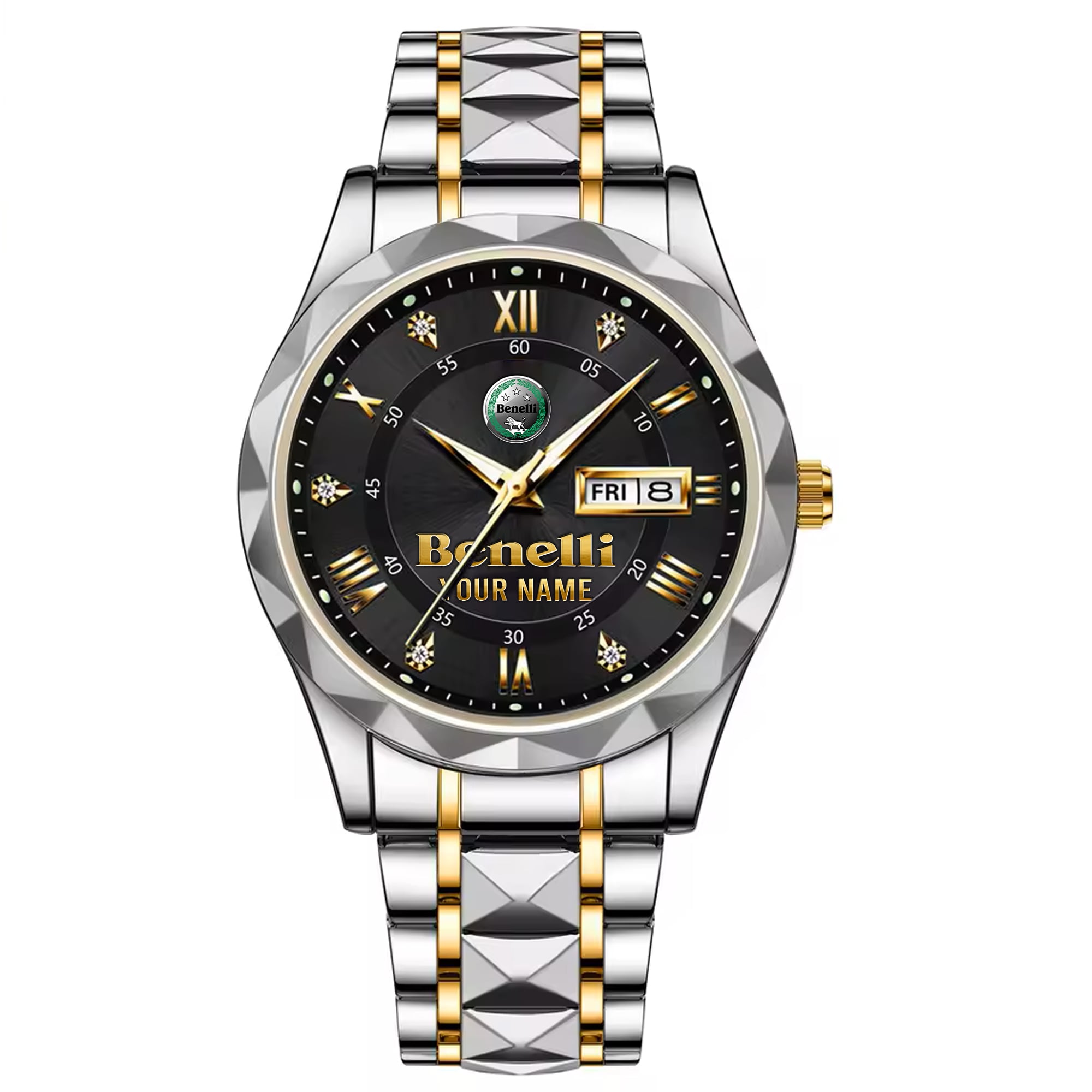 With the launch of the exclusive Made-to-Order service, you can make your watch unique by not only having your special Benelli Motorcycles Emblem but also your Name printed on the watch. Elevate your style with our custom watches featuring your favorite car logo. Meticulously crafted for durability and water resistance, these watches are the perfect item for daily use. Discover the ultimate combination of luxury, utility, and personalization!
