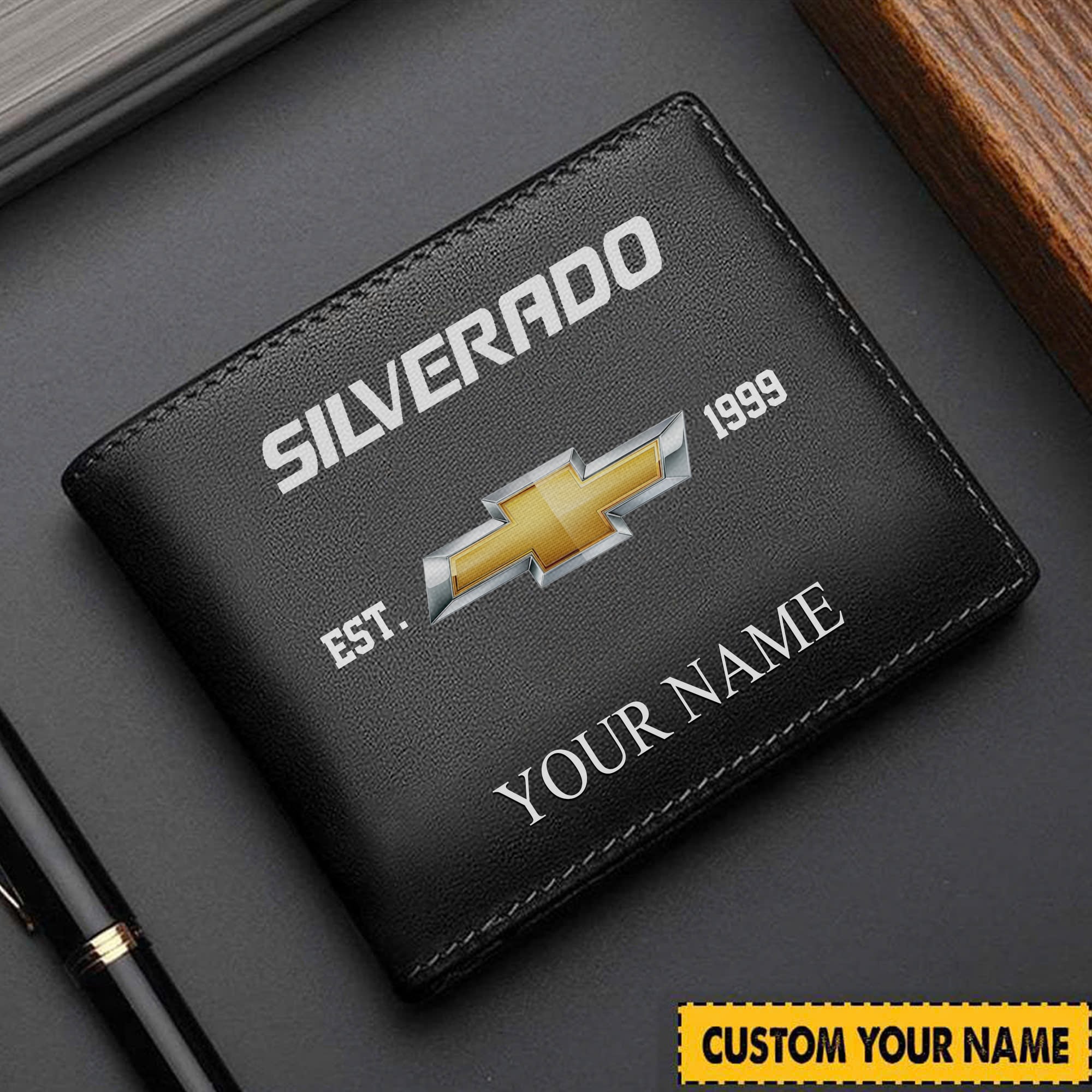 With the launch of the exclusive Made-to-Order service, you can make your Wallet unique by not only having your special Chevrolet Silverado Emblem but also your Name printed on the item. Upgrade your everyday carry with our custom leather wallets, featuring your favorite car emblem. Crafted from soft leather and boasting multiple pockets, these wallets blend style with functionality.
