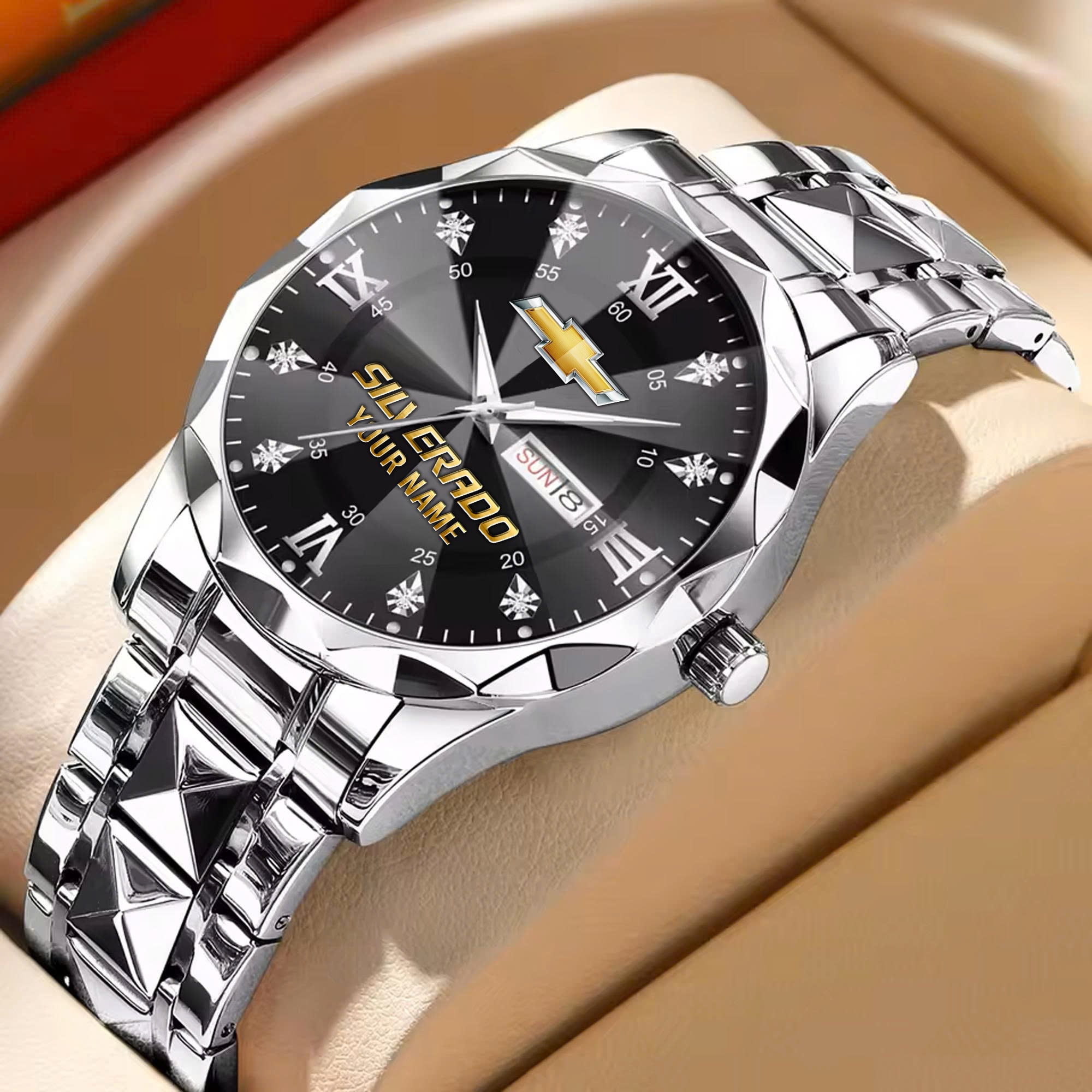 With the launch of the exclusive Made-to-Order service, you can make your watch unique by having your special Chevrolet Silverado Emblem printed on the watch. Elevate your style with our custom watches featuring your favorite car logo. Meticulously crafted for durability and water resistance, these watches are the perfect item for daily use. Discover the ultimate combination of luxury, utility, and personalization!