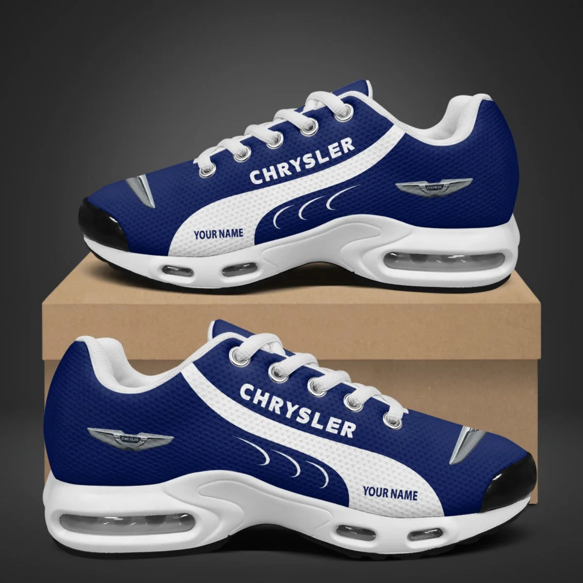 With the launch of the exclusive Made-to-Order service, you can make your sneakers/shoes unique by not only having your special Chrysler Emblem but also your Name printed on the shoes. Step into style with our customizable shoes, featuring your favorite car logo! Crafted from premium quality materials for ultimate comfort and durability, these shoes let you walk your passion every day. Make each step uniquely yours with footwear that’s as stylish as it is comfortable