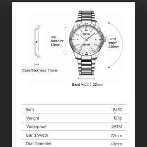 - Modern Numberless Dial Design: Clean minimalist dial without numerals delivers a sleek and contemporary look suitable for casual and business outfits.