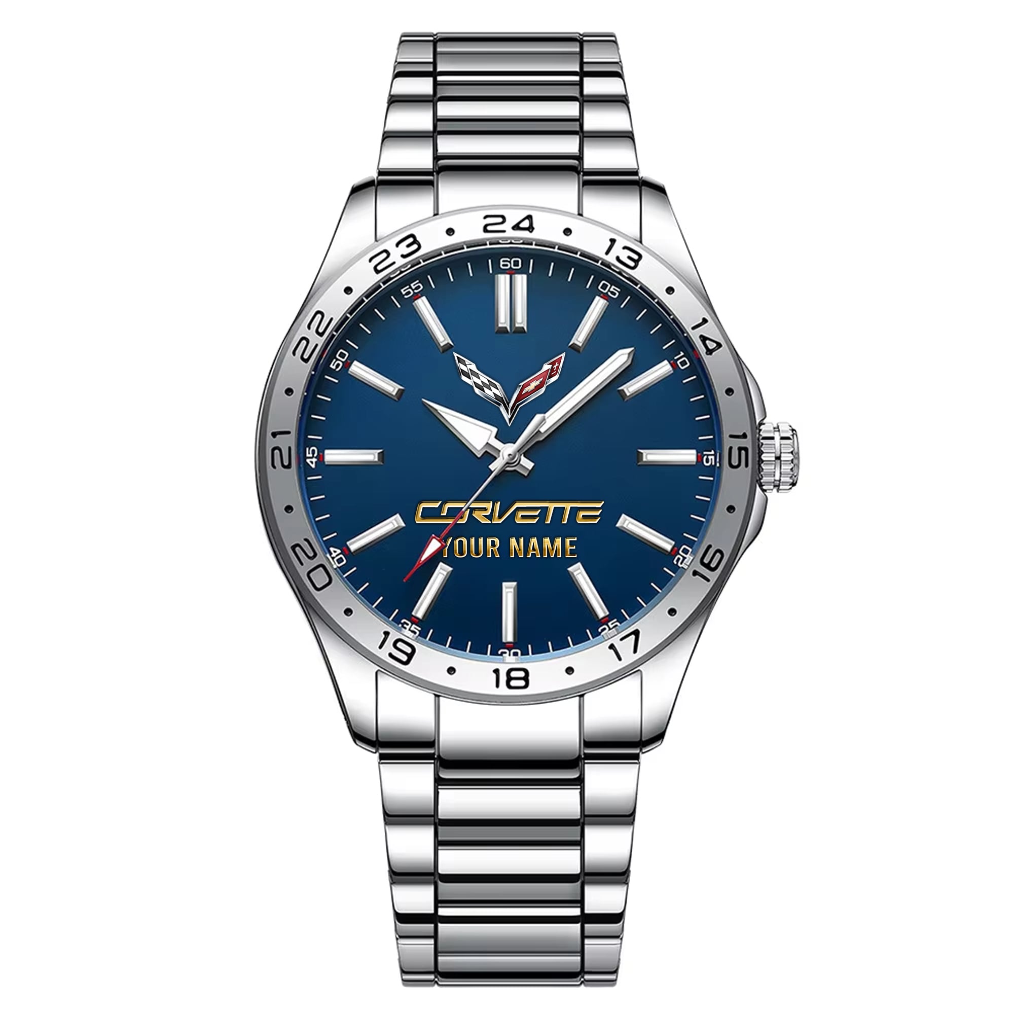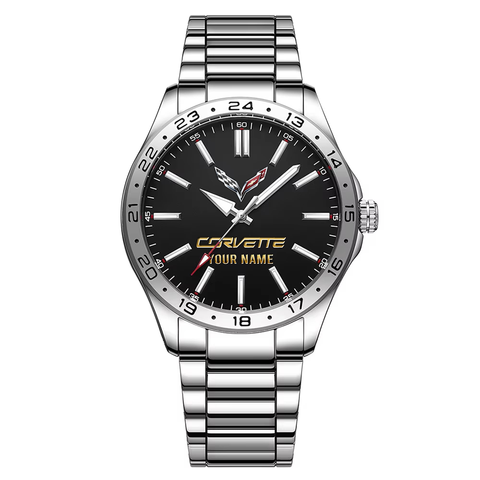 With the launch of the exclusive Made-to-Order service, you can make your watch unique by not only having your special Corvette Emblem but also your Name printed on the watch. Elevate your style with our custom watches featuring your favorite car logo. Meticulously crafted for durability and water resistance, these watches are the perfect item for daily use. Discover the ultimate combination of luxury, utility, and personalization!