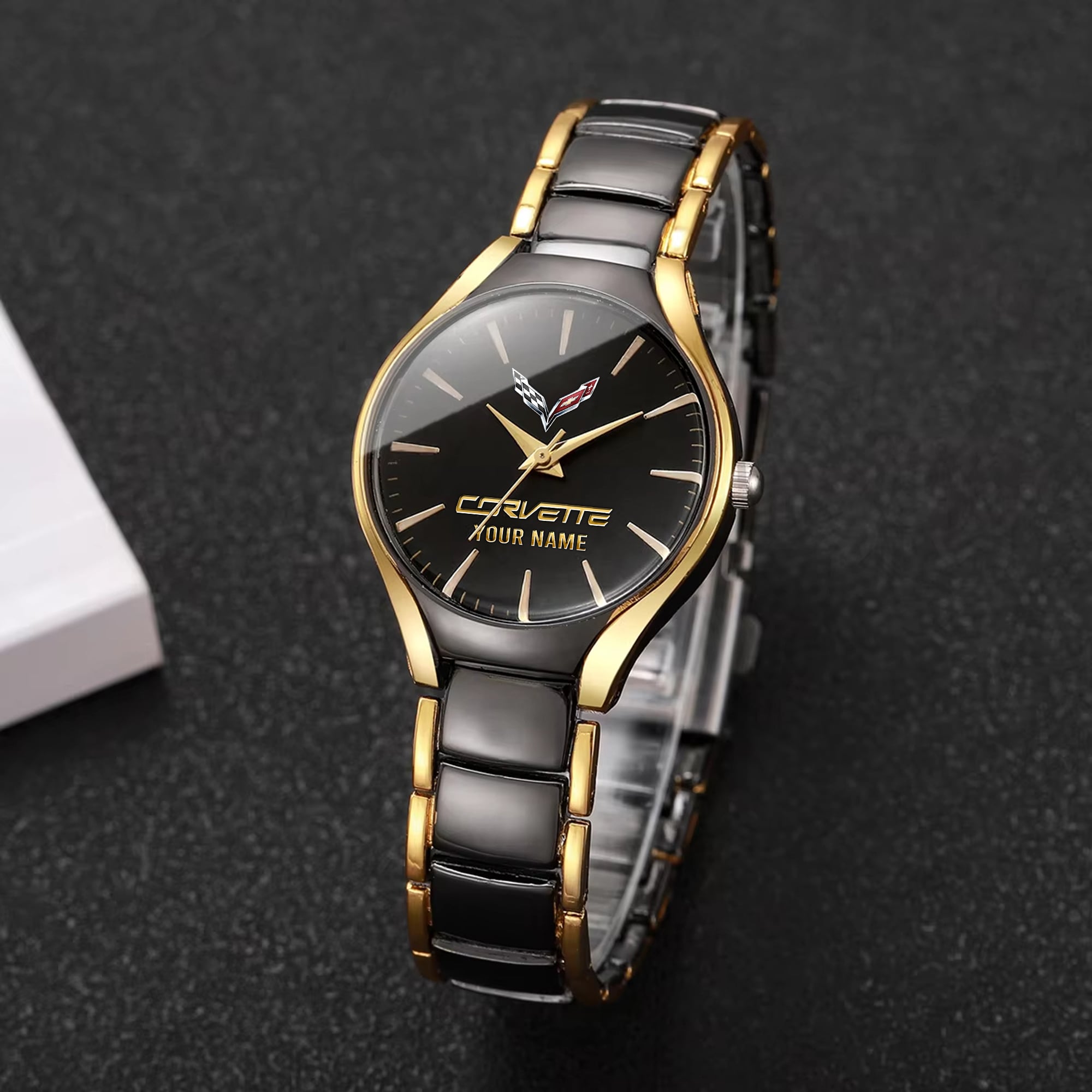 With the launch of the exclusive Made-to-Order service, you can make your watch unique by not only having your special Corvette Emblem but also your Name printed on the watch. Elevate your style with our custom watches featuring your favorite car logo. Meticulously crafted for durability and water resistance, these watches are the perfect item for daily use. Discover the ultimate combination of luxury, utility, and personalization!