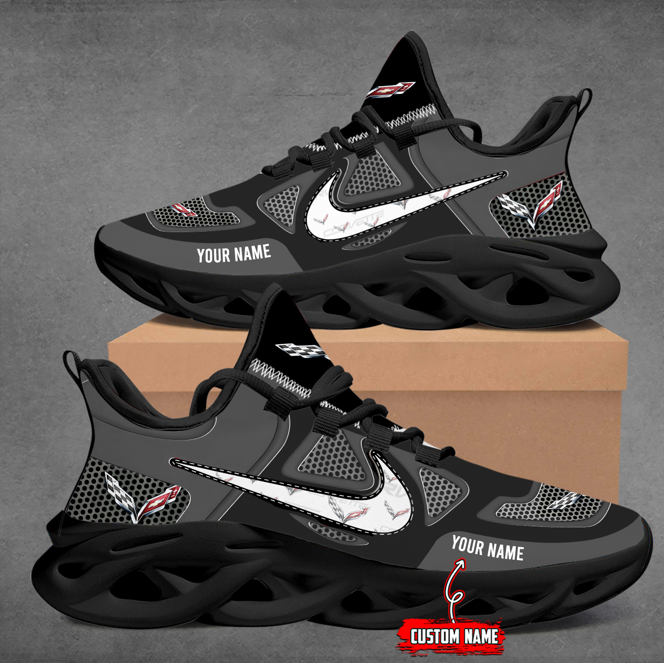 With the launch of the exclusive Made-to-Order service, you can make your sneakers/shoes unique by not only having your special Corvette Emblem but also your Name or Car Name printed on the shoes.