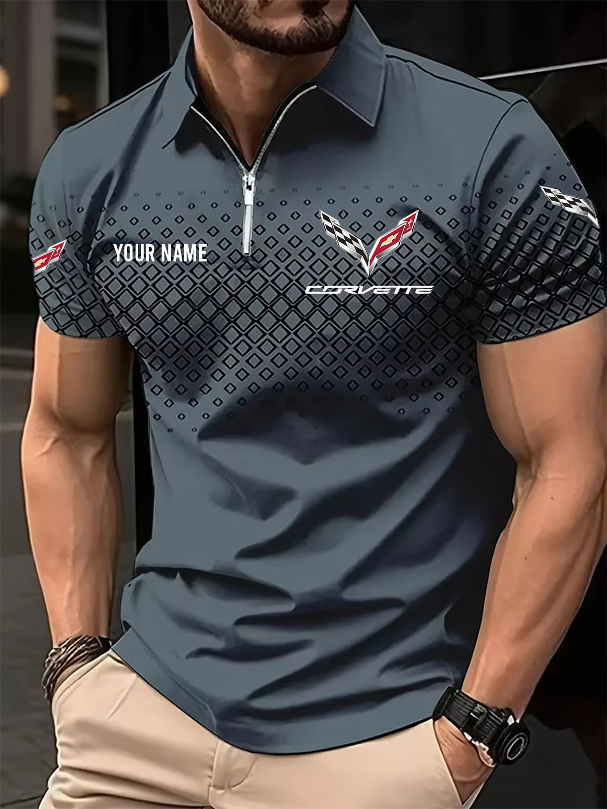 Hi there!! Are you looking at our Corvette Polo Shirts. These Polo Shirts are unique, made with love, and they are perfect accessories for your outfit. The Corvette Emblem on the Shirts makes it a perfect item for any Corvette Lovers.