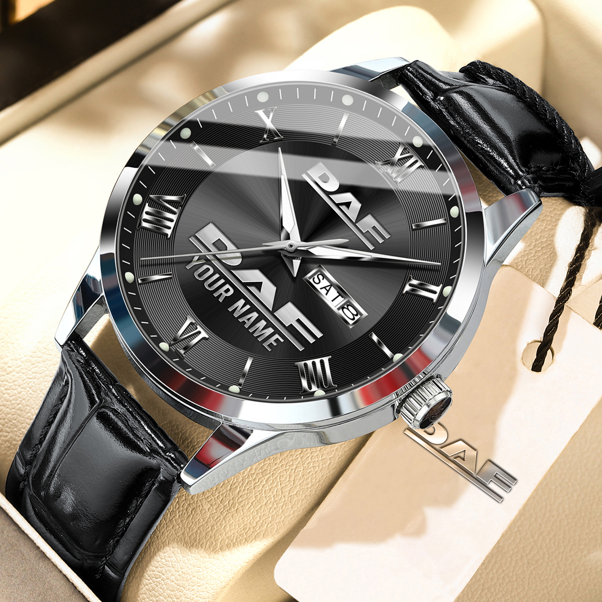 • Custom Favorite Brand Logo Dial: Personalized watch face featuring the customer’s favorite brand or car logo for a unique, custom look.