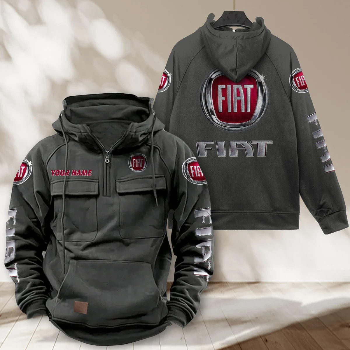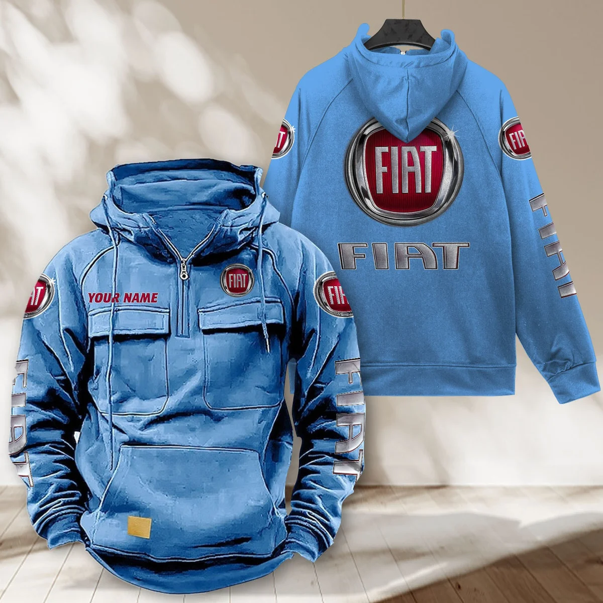 Hi there!! Are you looking at our Fiat Hoodies. These Hoodiess are unique, made with love with the shining Fiat emblem on it. The Fiat Emblem on the Hoodies makes it a perfect item for any Fiat Lovers.