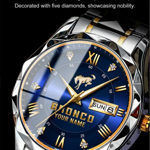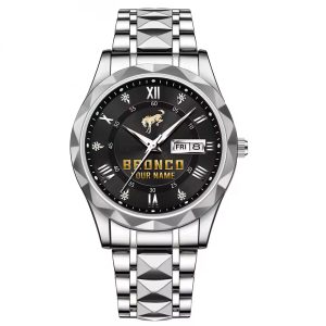 With the launch of the exclusive Made-to-Order service, you can make your watch unique by not only having your special Ford Bronco Emblem but also your Name printed on the watch. Elevate your style with our custom watches featuring your favorite car logo. Meticulously crafted for durability and water resistance, these watches are the perfect item for daily use. Discover the ultimate combination of luxury, utility, and personalization!