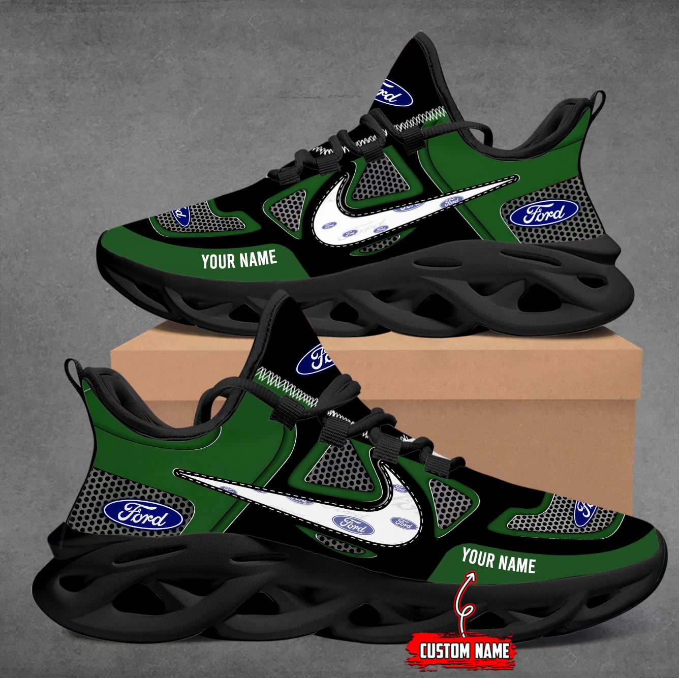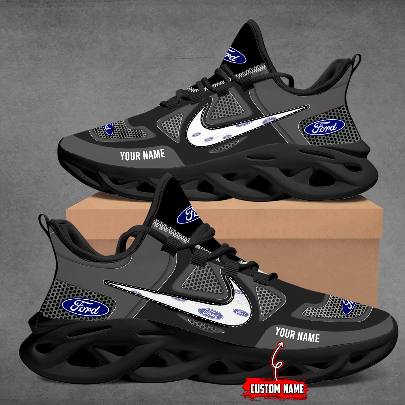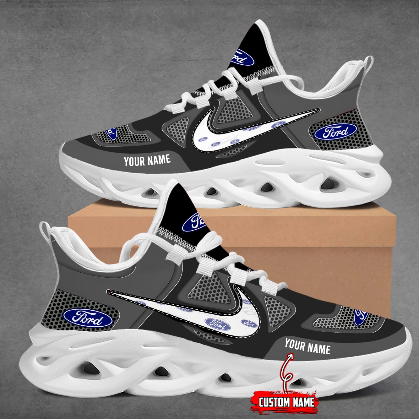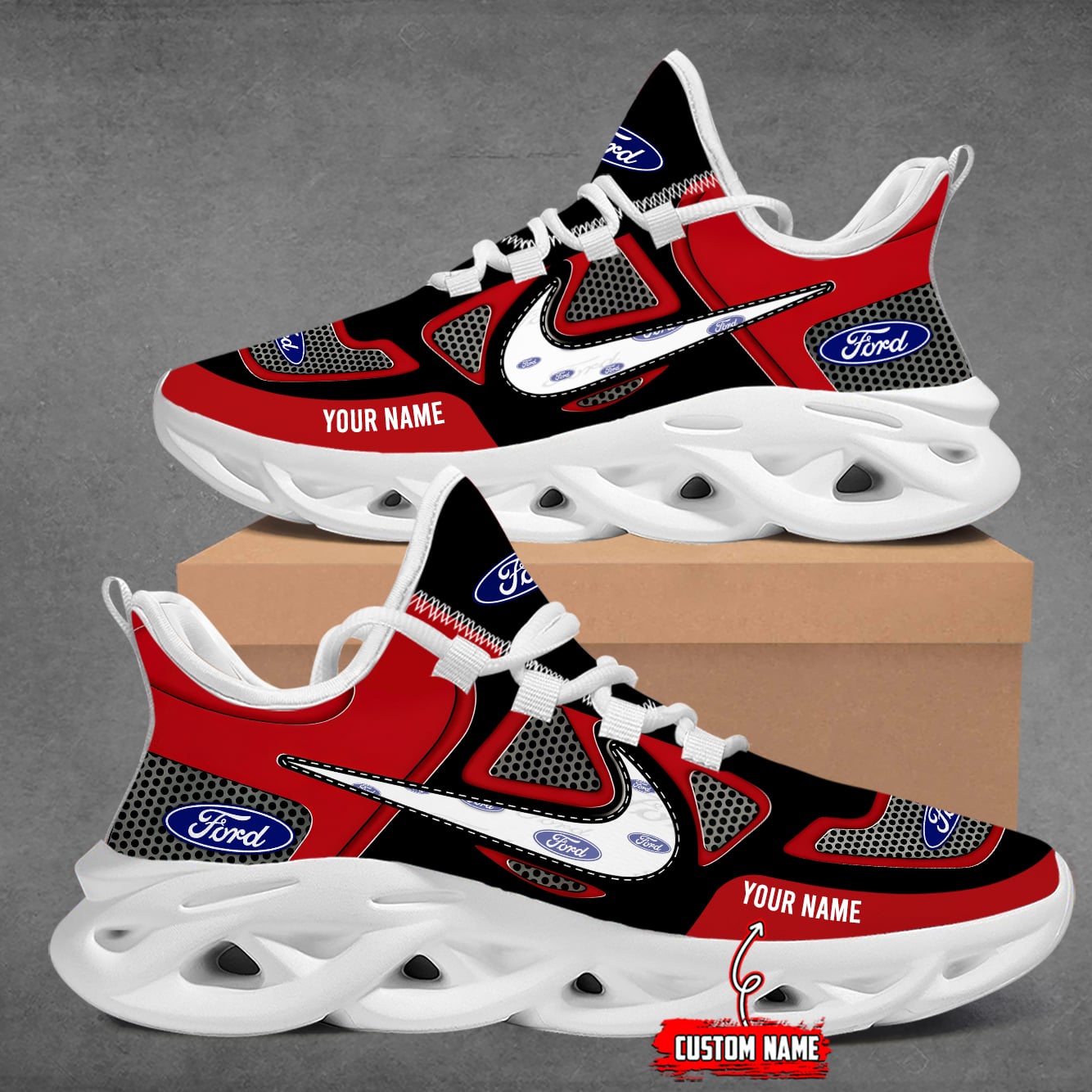 With the launch of the exclusive Made-to-Order service, you can make your sneakers/shoes unique by not only having your special Ford Emblem but also your Name or Car Name printed on the shoes.
