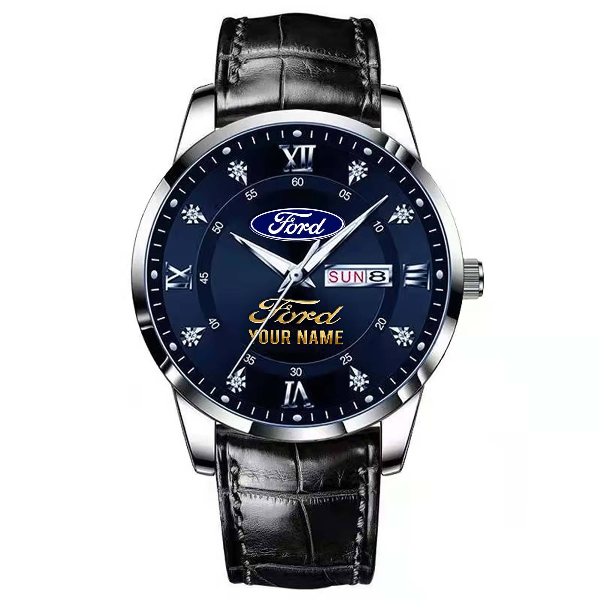 With the launch of the exclusive Made-to-Order service, you can make your watch unique by not only having your special Ford Emblem but also your Name printed on the watch. Elevate your style with our custom watches featuring your favorite car logo. Meticulously crafted for durability and water resistance, these watches are the perfect item for daily use. Discover the ultimate combination of luxury, utility, and personalization!