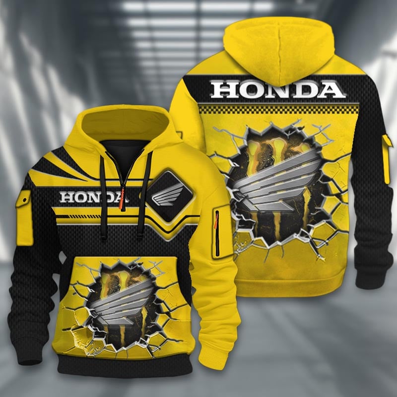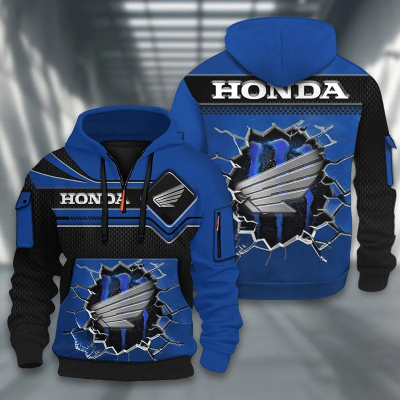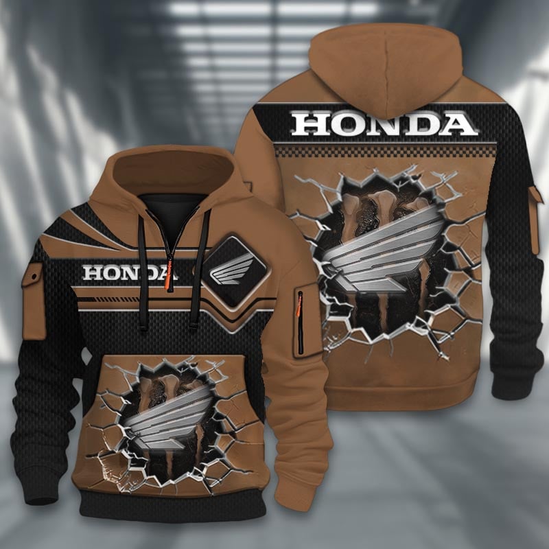 Hi there!! Are you looking at our Honda Half-zip Hoodie. These Half-zip Hoodies are unique, made with love, and they are perfect accessories for your outfit. The Honda Emblem on the Half-zip Hoodie makes it a perfect item for any Honda Lovers.
