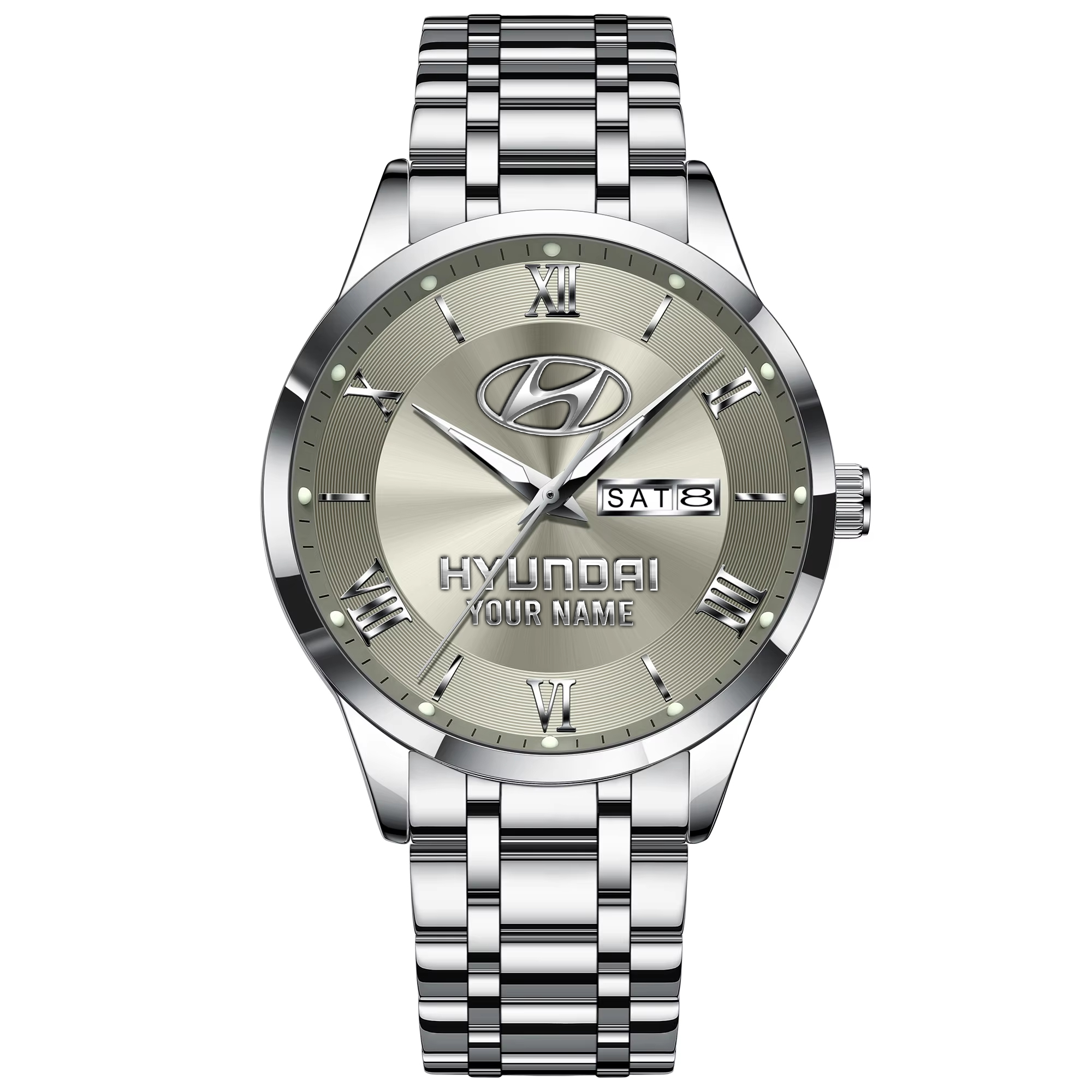 With the launch of the exclusive Made-to-Order service, you can make your watch unique by not only having your special HyundaiEmblem but also your Name printed on the watch. Elevate your style with our custom watches featuring your favorite car logo. Meticulously crafted for durability and water resistance, these watches are the perfect item for daily use. Discover the ultimate combination of luxury, utility, and personalization!