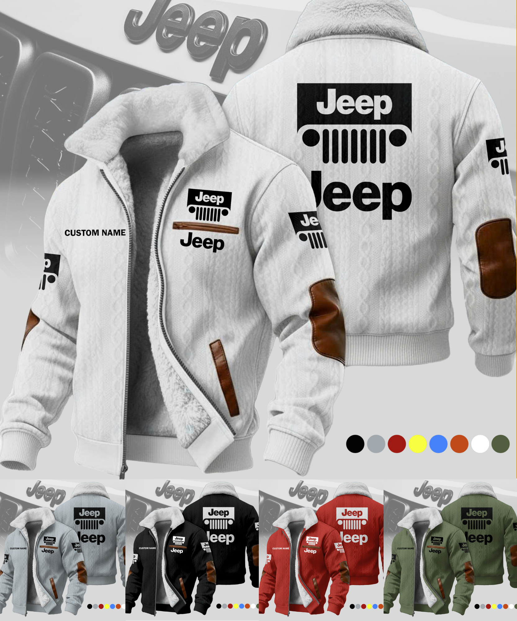 Hi there!! Are you looking at our Jeep Fleece Jacket. These Fleece Jacket are unique, made with love, and they are perfect accessories for your outfit. The Jeep Emblem on the Fleece Jacket makes it a perfect item for any Jeep Lovers.