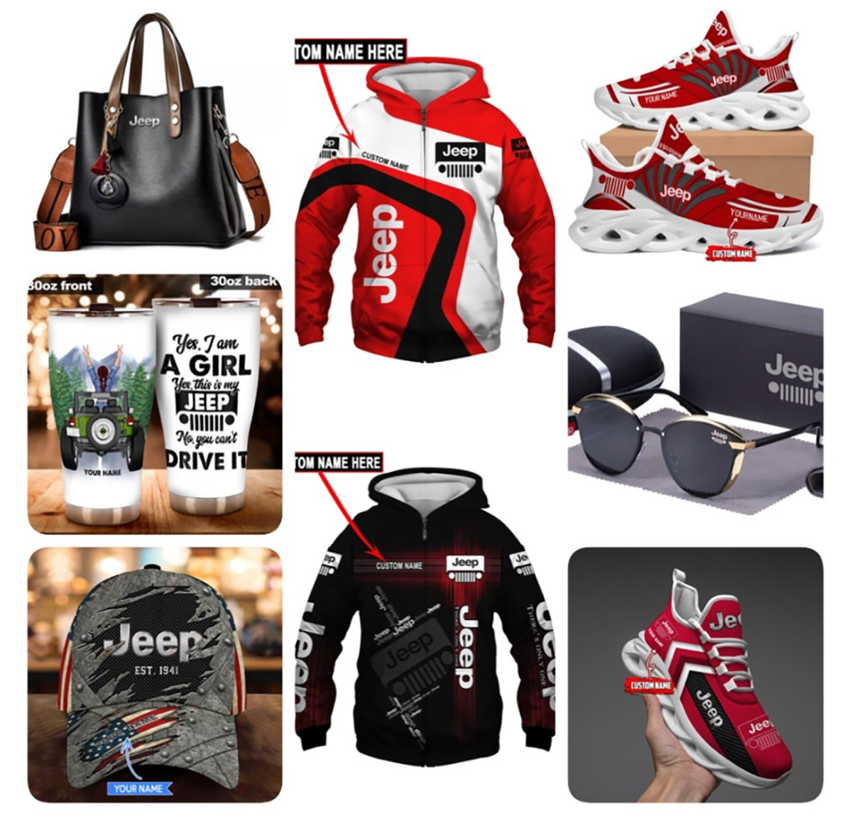 - Buy with Jeep sunglasses, tumblers, caps or handbags (in Frequently bought together) or CLICK HERE to visit our full Jeep Collection to browse all accessories (shoes, bags, caps, clothes, flags..etc)