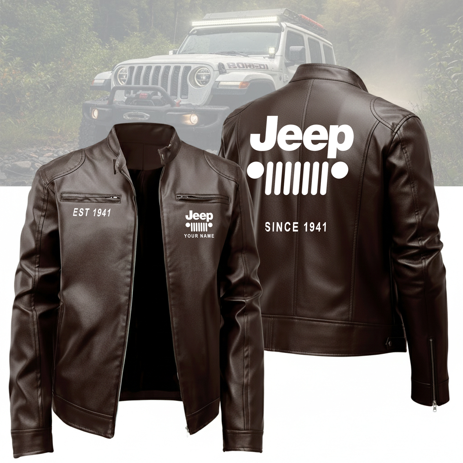 Hi there!! Are you looking at our Jeep Leather Jacket. These Leather Jackets are unique, made with love, and they are perfect accessories for your outfit. The Jeep Emblem on the Leather Jackets makes it a perfect item for any Jeep Lovers.