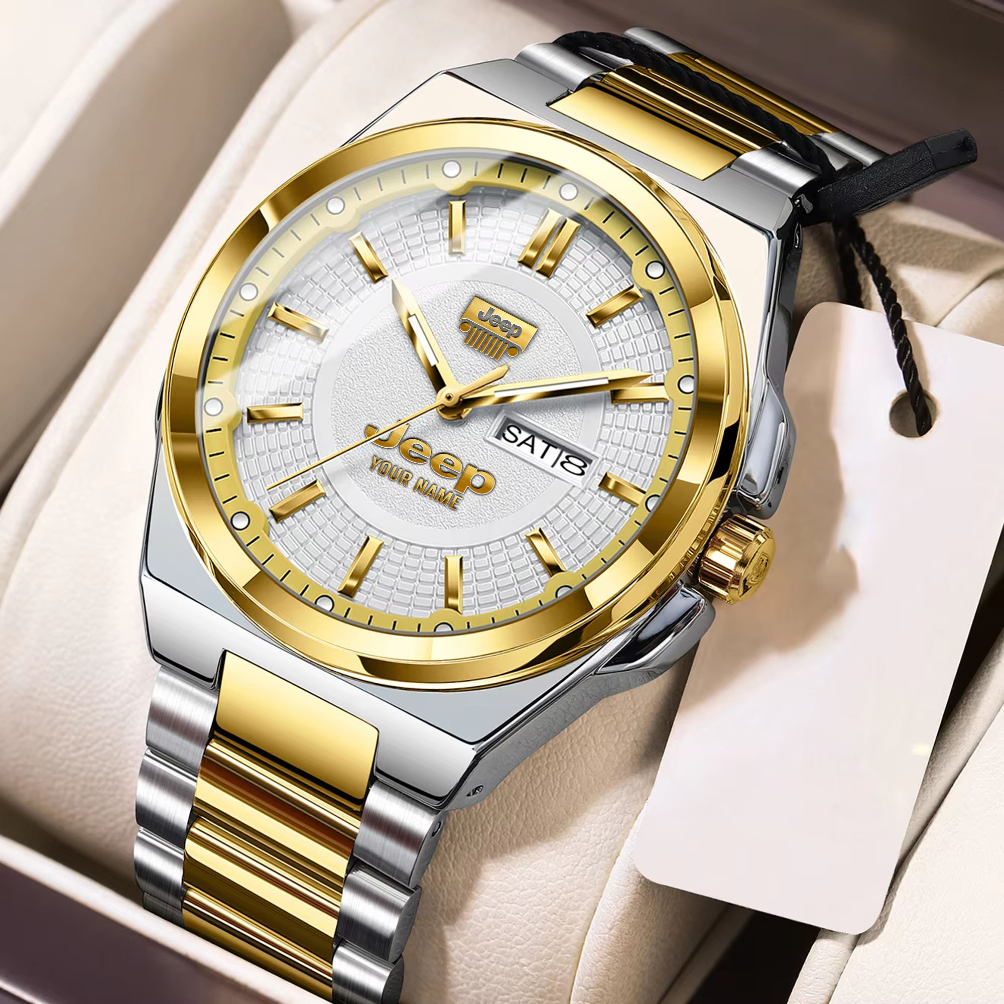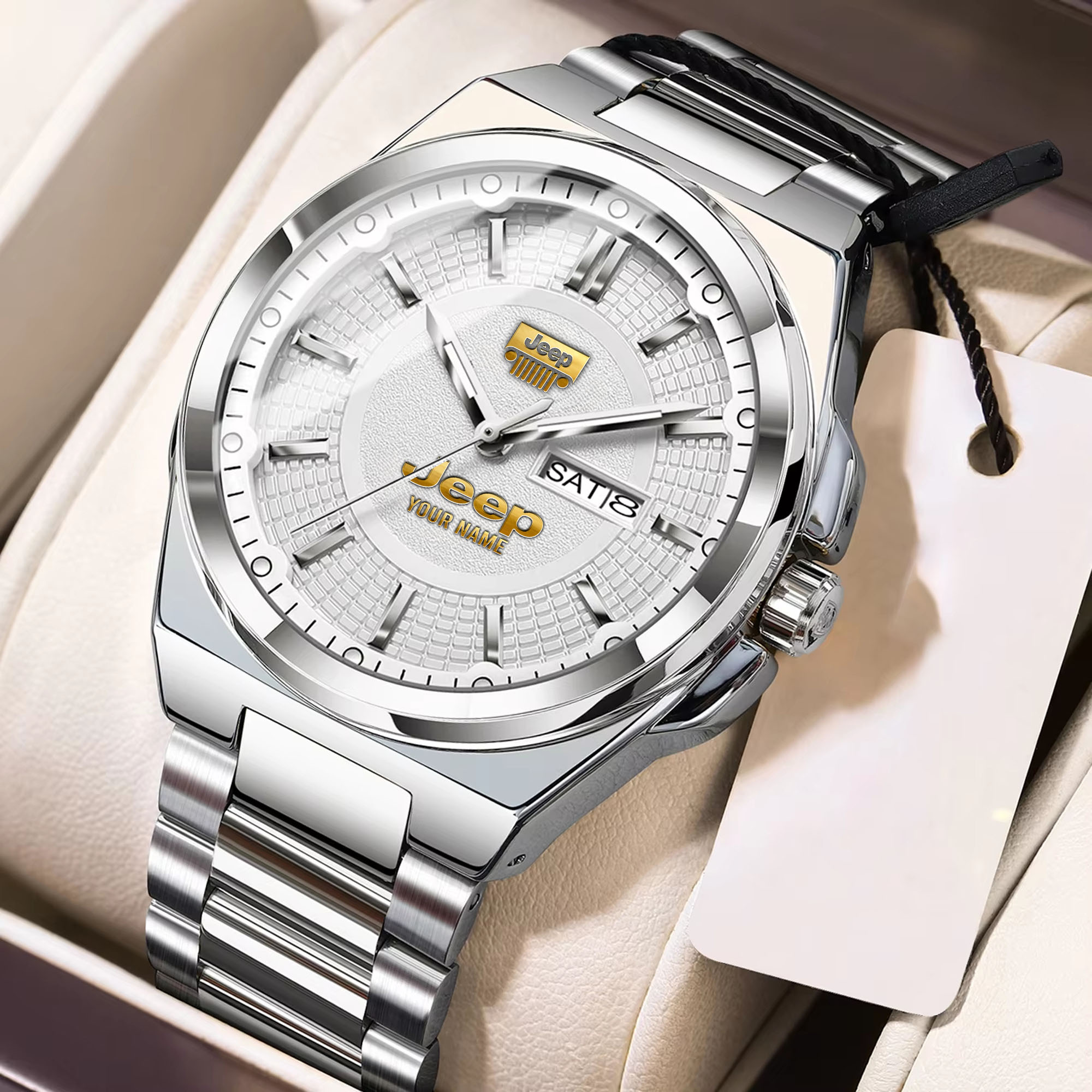 With the launch of the exclusive Made-to-Order service, you can make your watch unique by not only having your special Jeep Emblem but also your Name printed on the watch. Elevate your style with our custom watches featuring your favorite car logo. Meticulously crafted for durability and water resistance, these watches are the perfect item for daily use. Discover the ultimate combination of luxury, utility, and personalization!