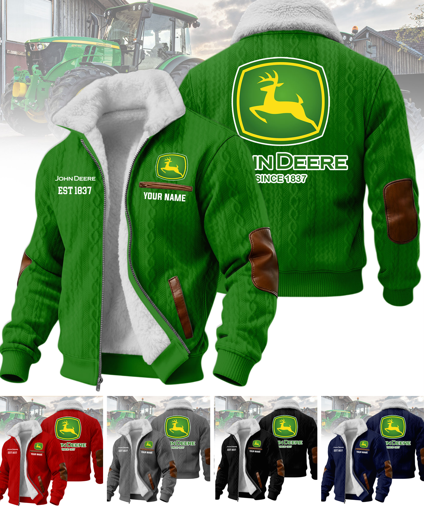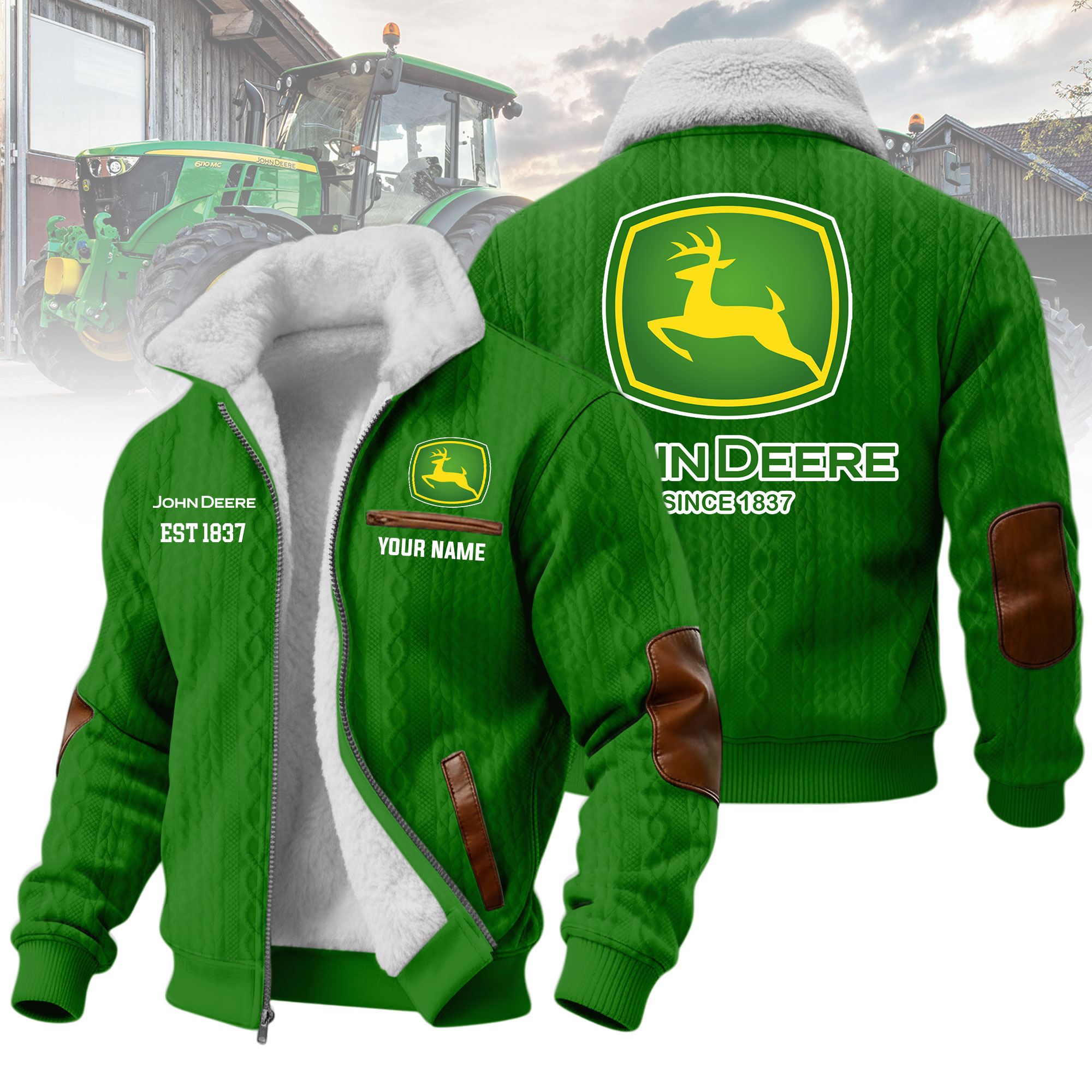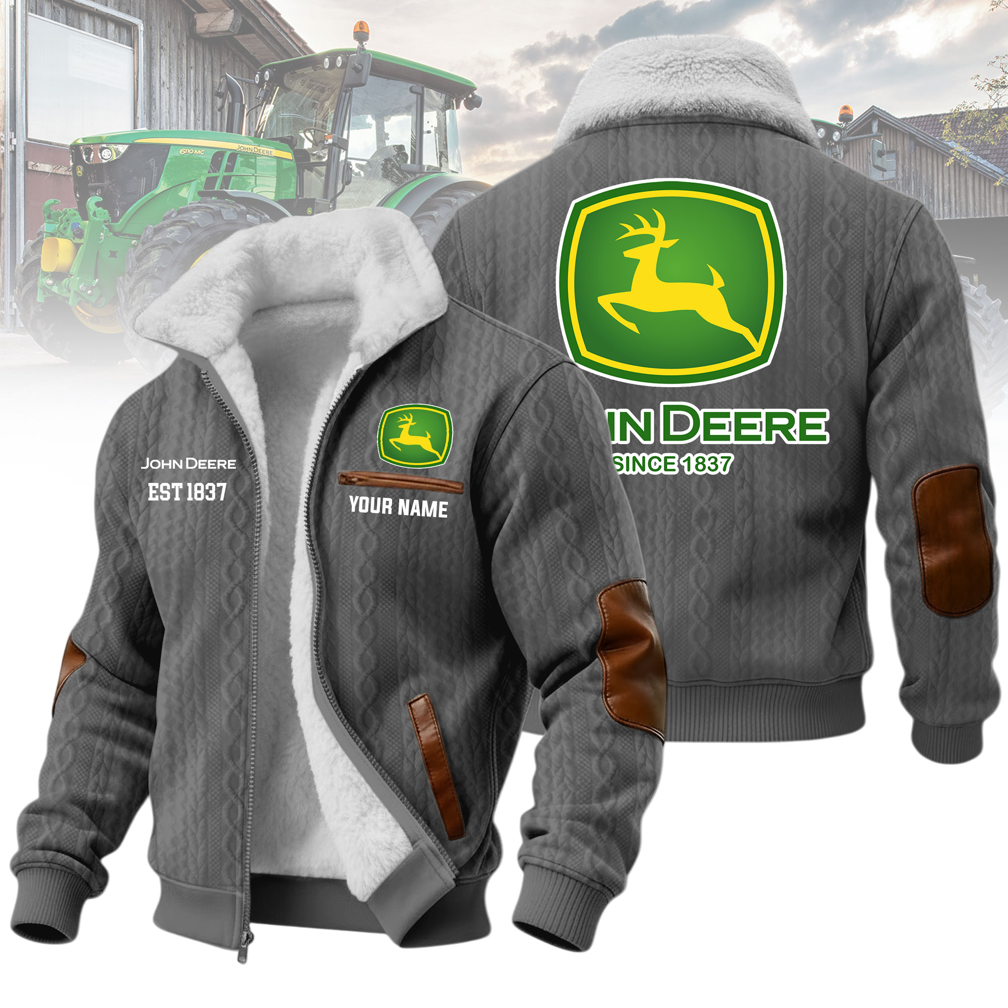 John Deere Custom Name Casual Winter Fleece Jacket VS6