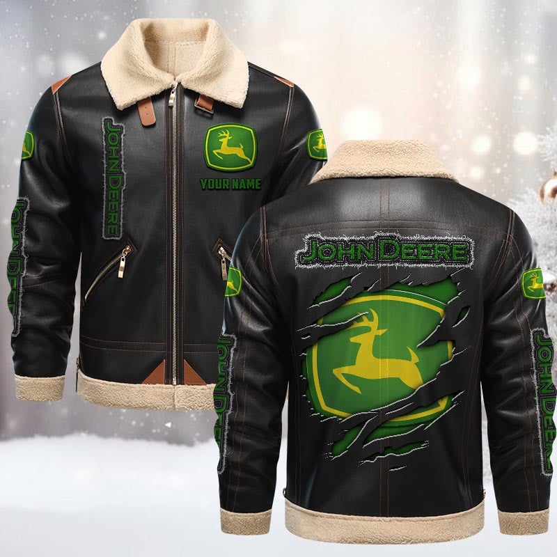 John Deere Custom Name Design Casual Winter Leather Jacket VS08