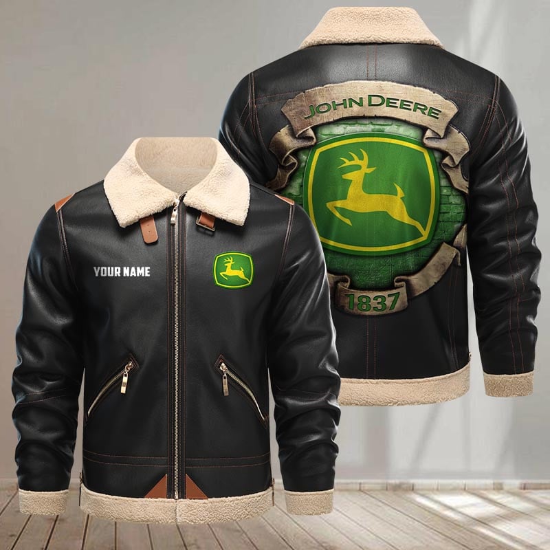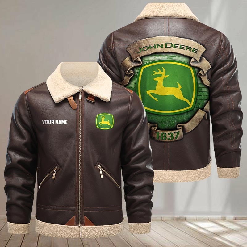 John Deere Custom Name Design Casual Winter Leather Jacket VS09