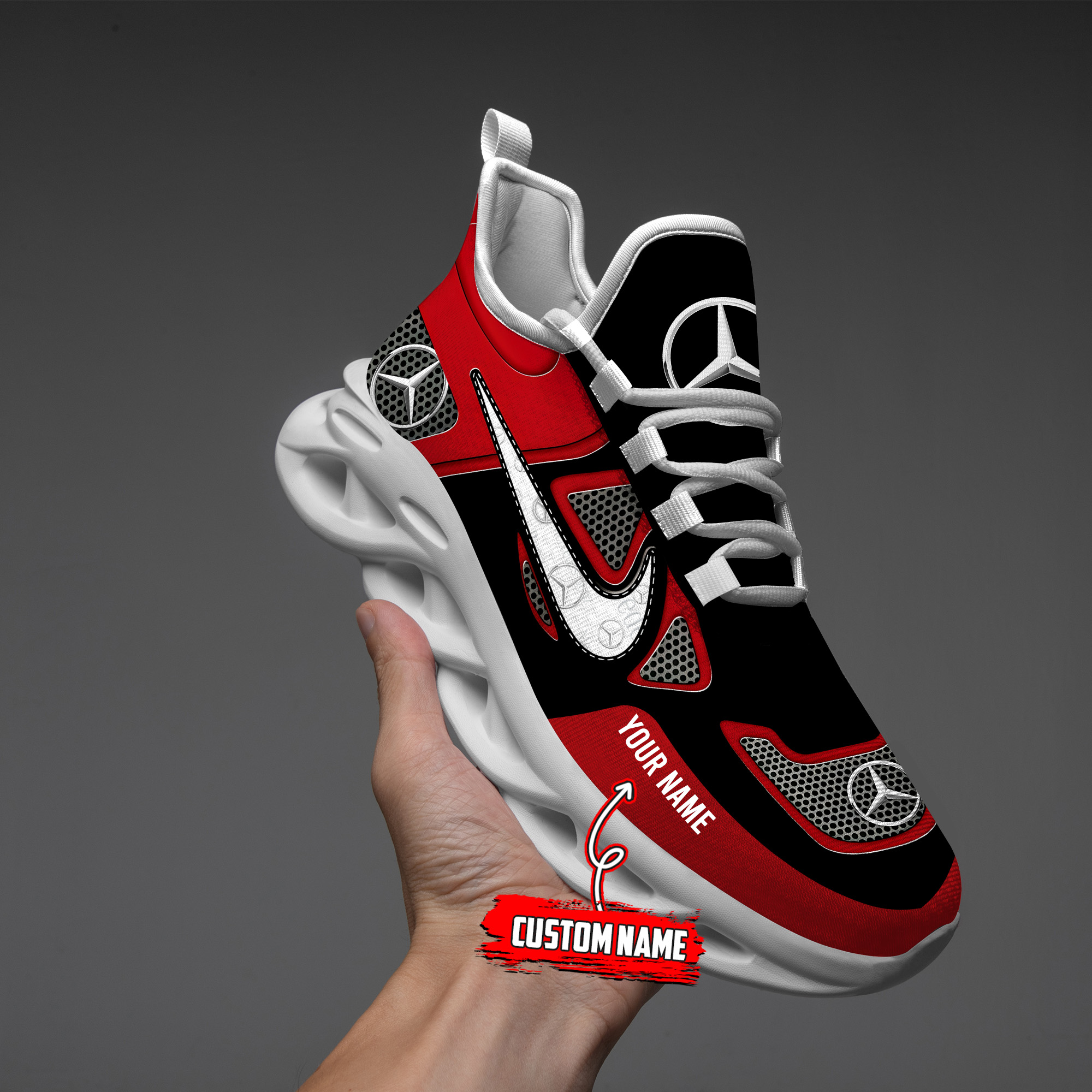 With the launch of the exclusive Made-to-Order service, you can make your sneakers/shoes unique by not only having your special Mercedes Emblem but also your Name or Car Name printed on the shoes.