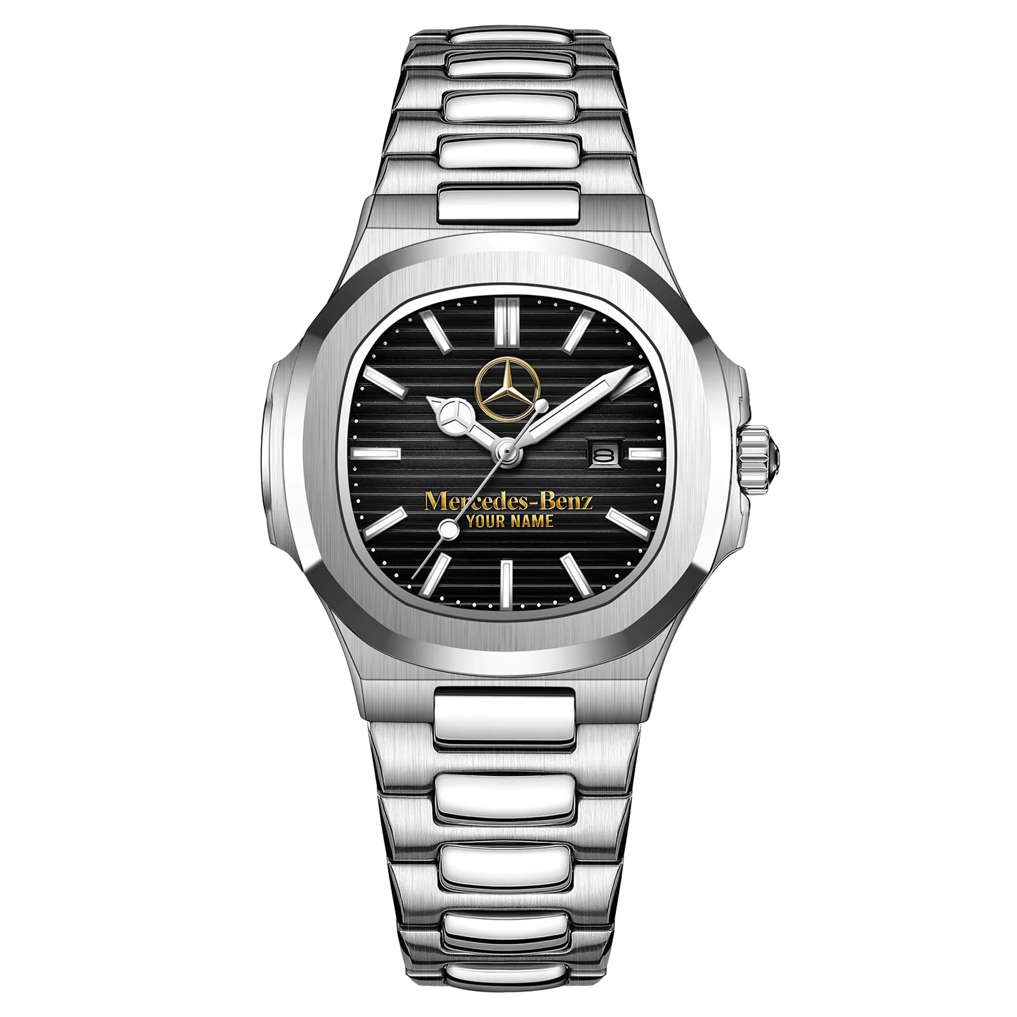 With the launch of the exclusive Made-to-Order service, you can make your watch unique by not only having your special Mercedes Emblem but also your Name printed on the watch. Elevate your style with our custom watches featuring your favorite car logo. Meticulously crafted for durability and water resistance, these watches are the perfect item for daily use. Discover the ultimate combination of luxury, utility, and personalization!