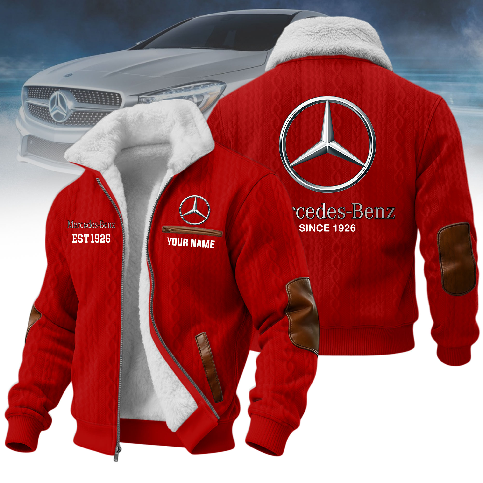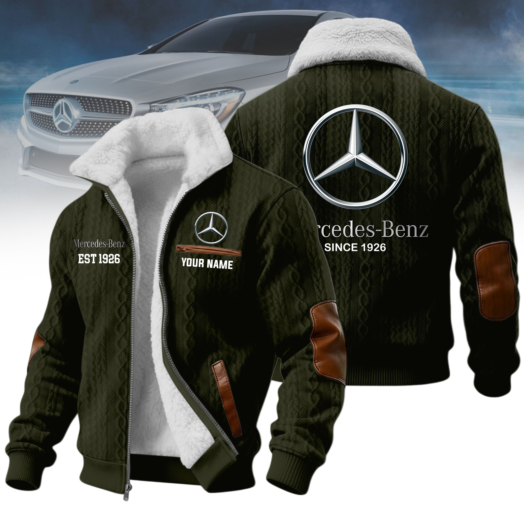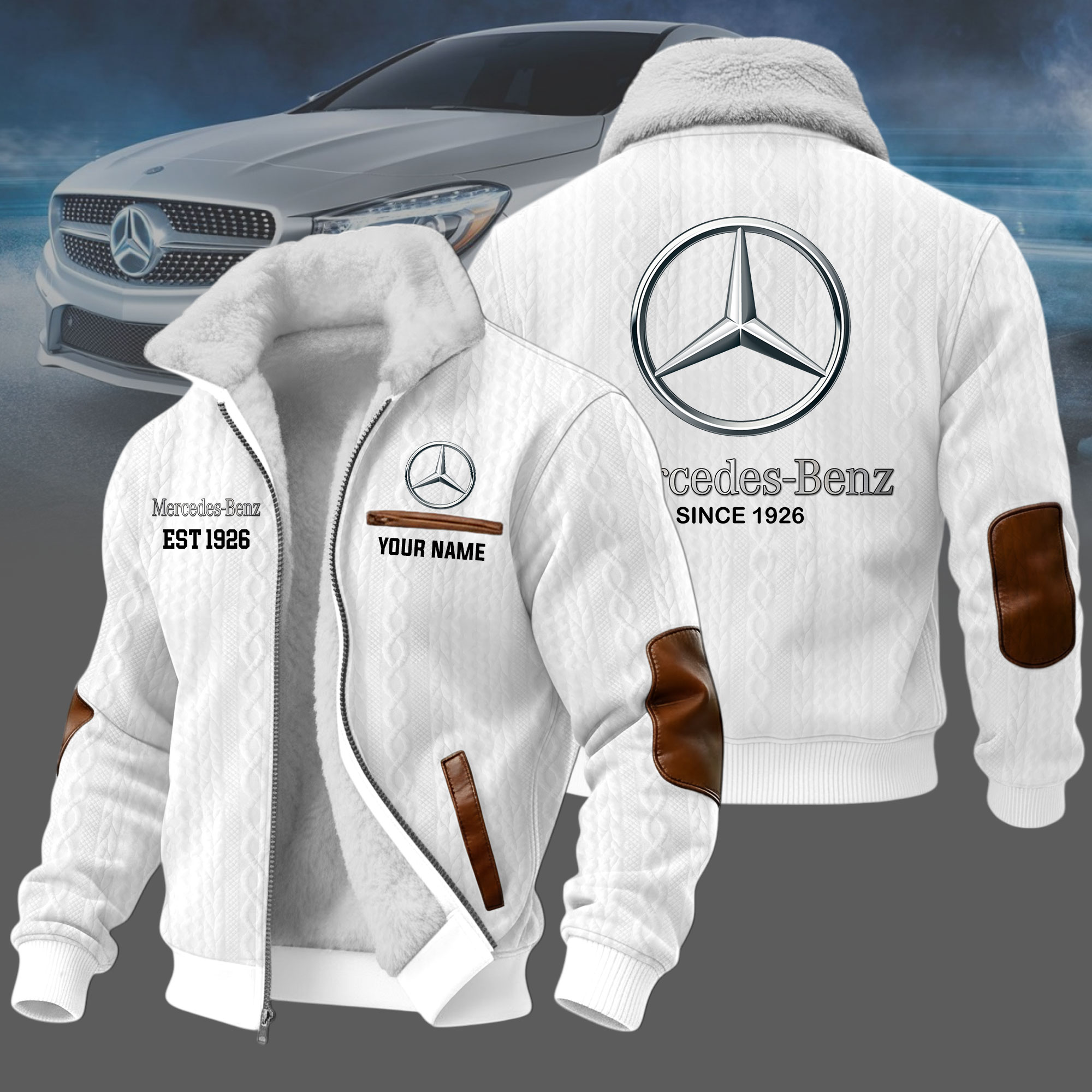 What makes it special: personalized design with your name and favorite car logo, creating a one-of-a-kind jacket that reflects your identity and passion.