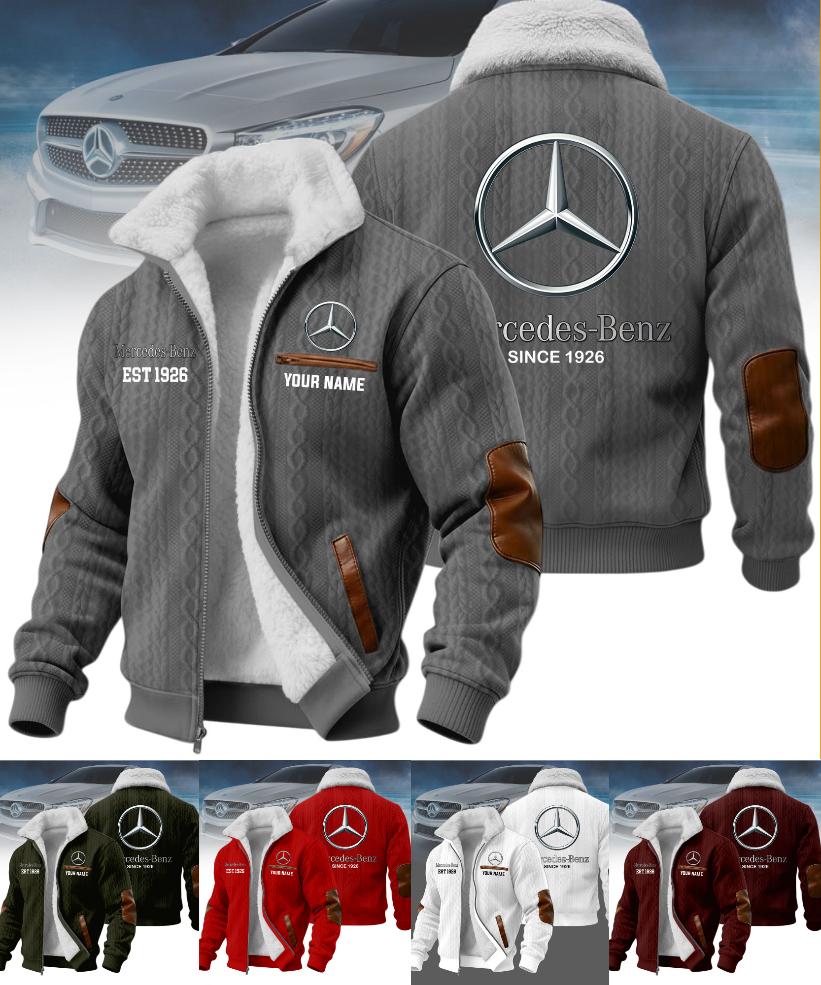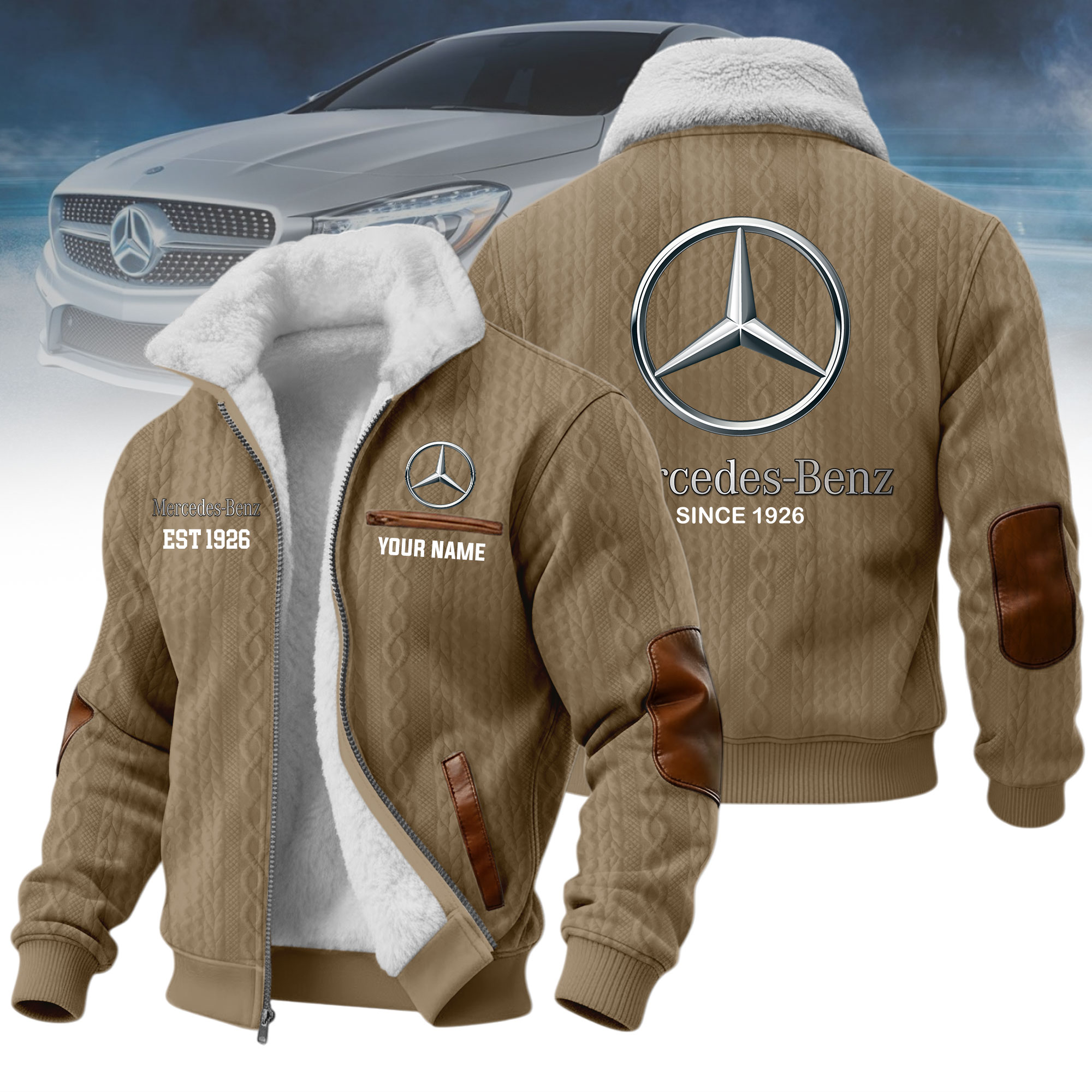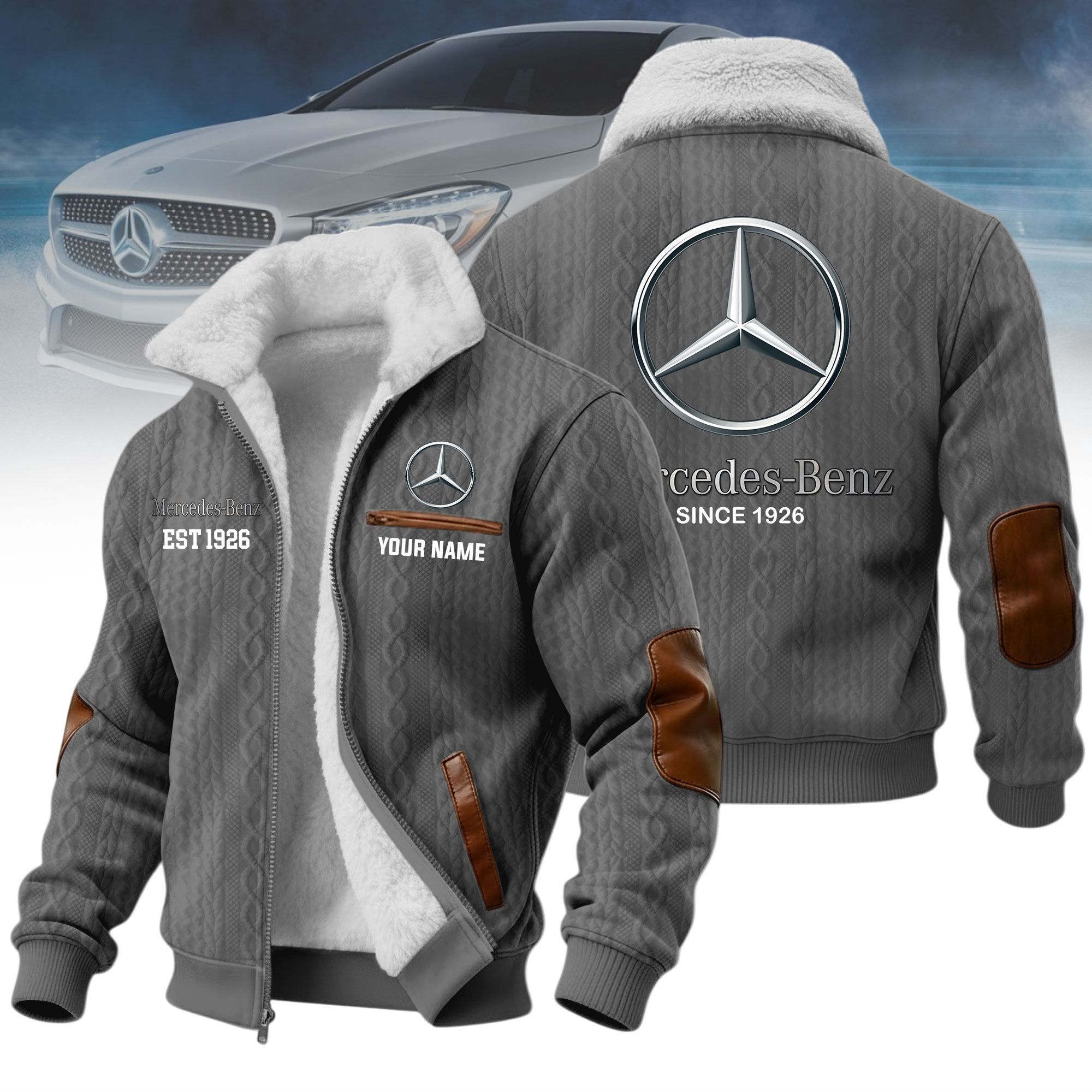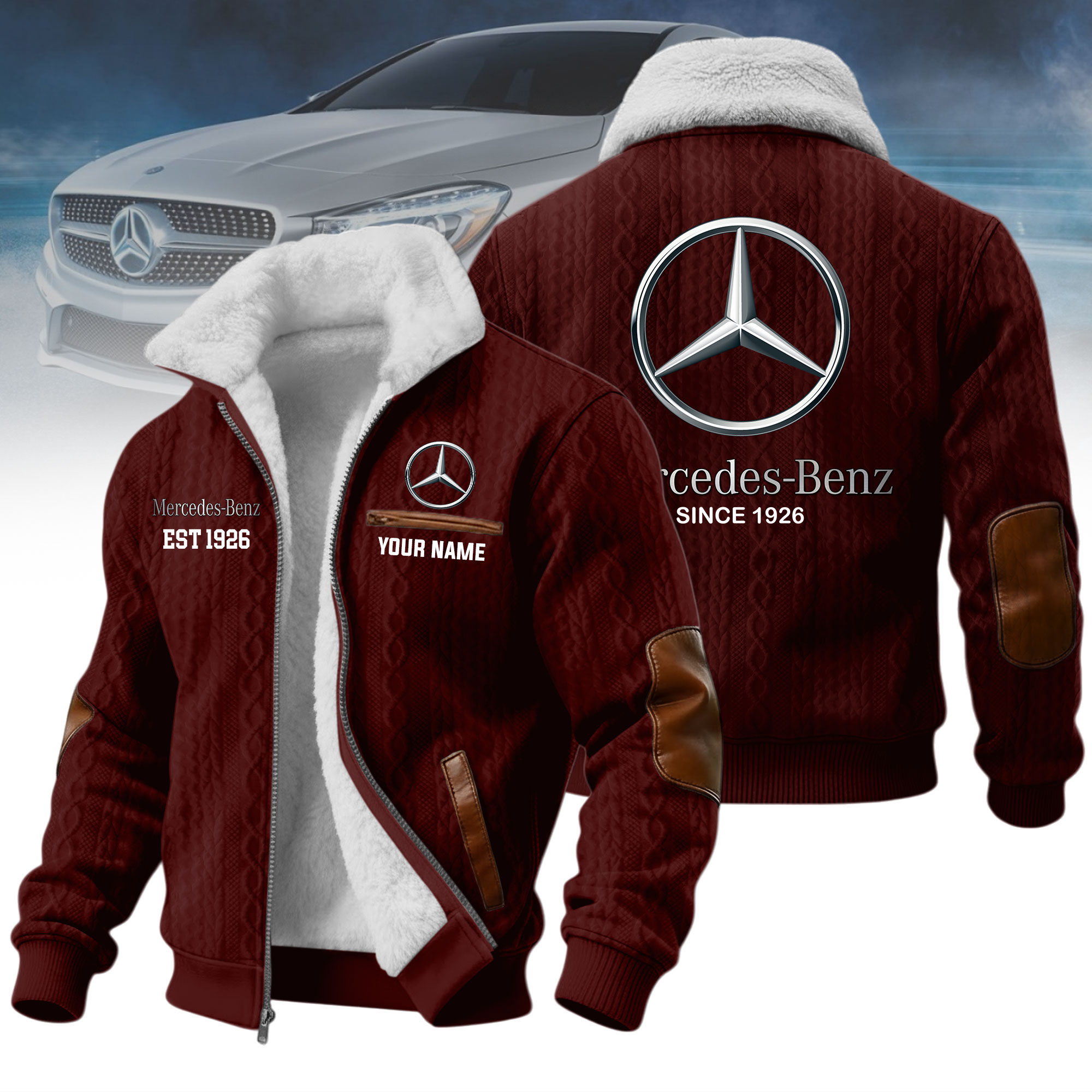 What makes it special: personalized design with your name and favorite car logo, creating a one-of-a-kind jacket that reflects your identity and passion.