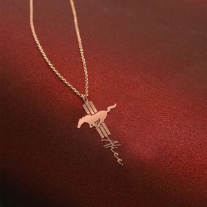 Hi there!! Are you looking at our Mustang Necklace. Our custom designs offer a personal touch that’s perfect for any look. This Necklace for Women is made with high-quality High Quality 925 Sterling Silver and is sure to become a staple in your wardrobe. The Mustang Emblem on the necklace makes it a perfect item for any Mustang Lovers.