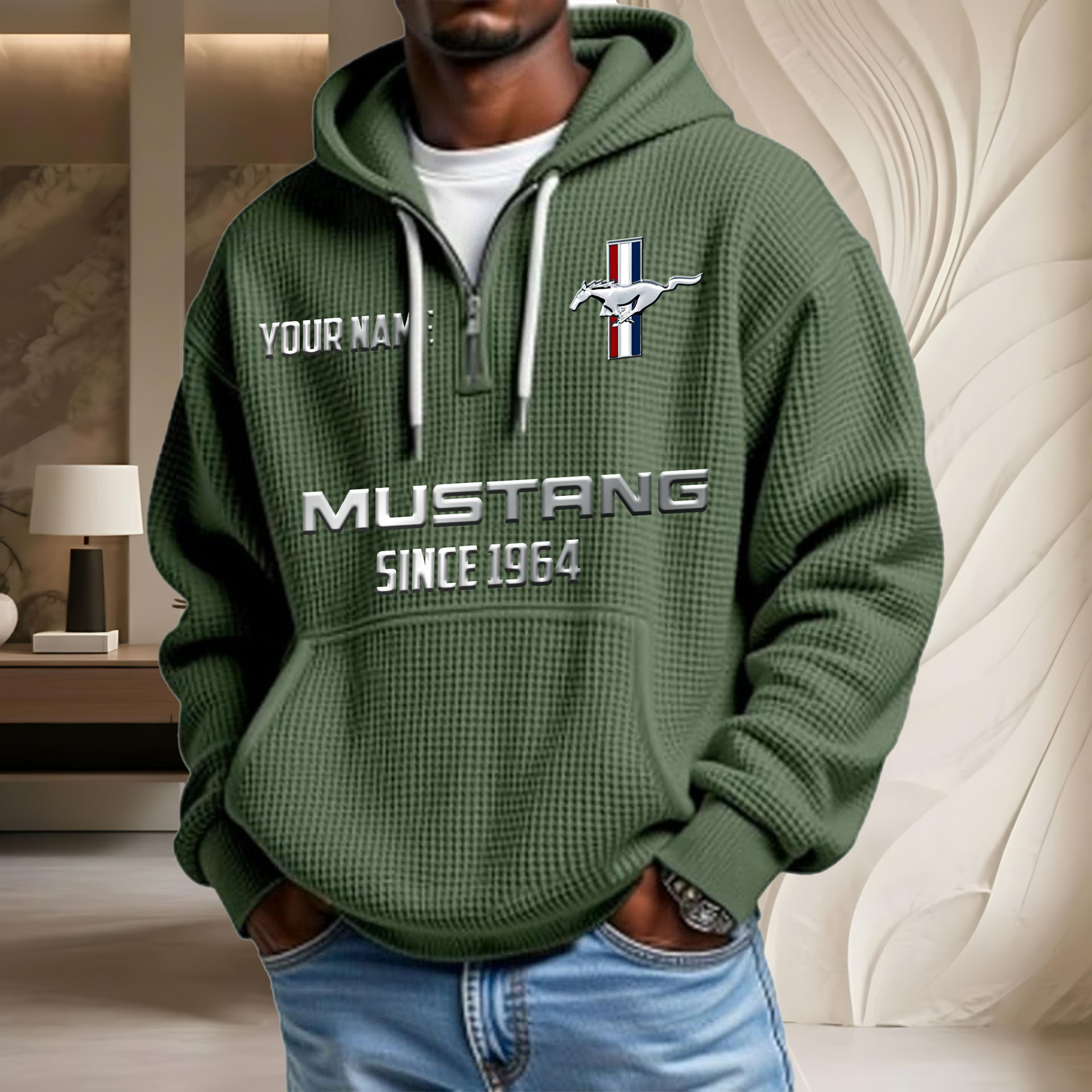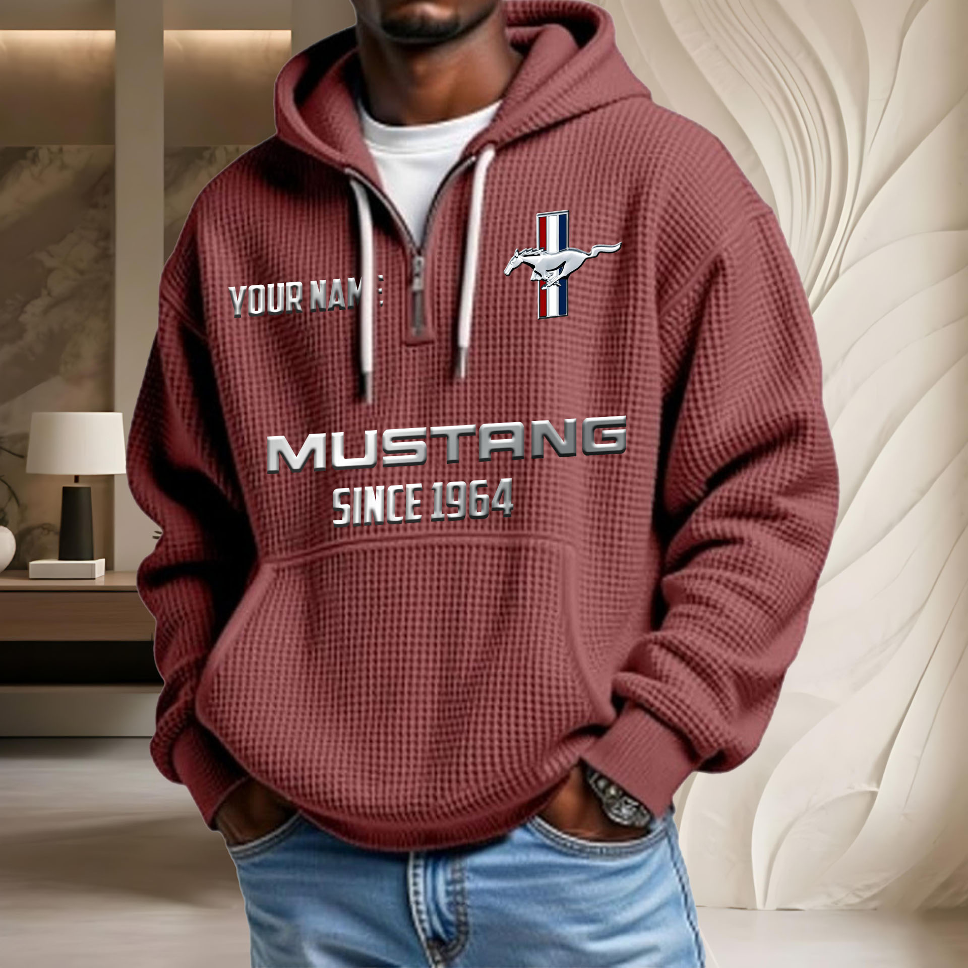 Hi there!! Are you looking at our Mustang Hoodies. These Hoodiess are unique, made with love with the shining Mustang emblem on it. The Mustang Emblem on the Hoodies makes it a perfect item for any Mustang Lovers.