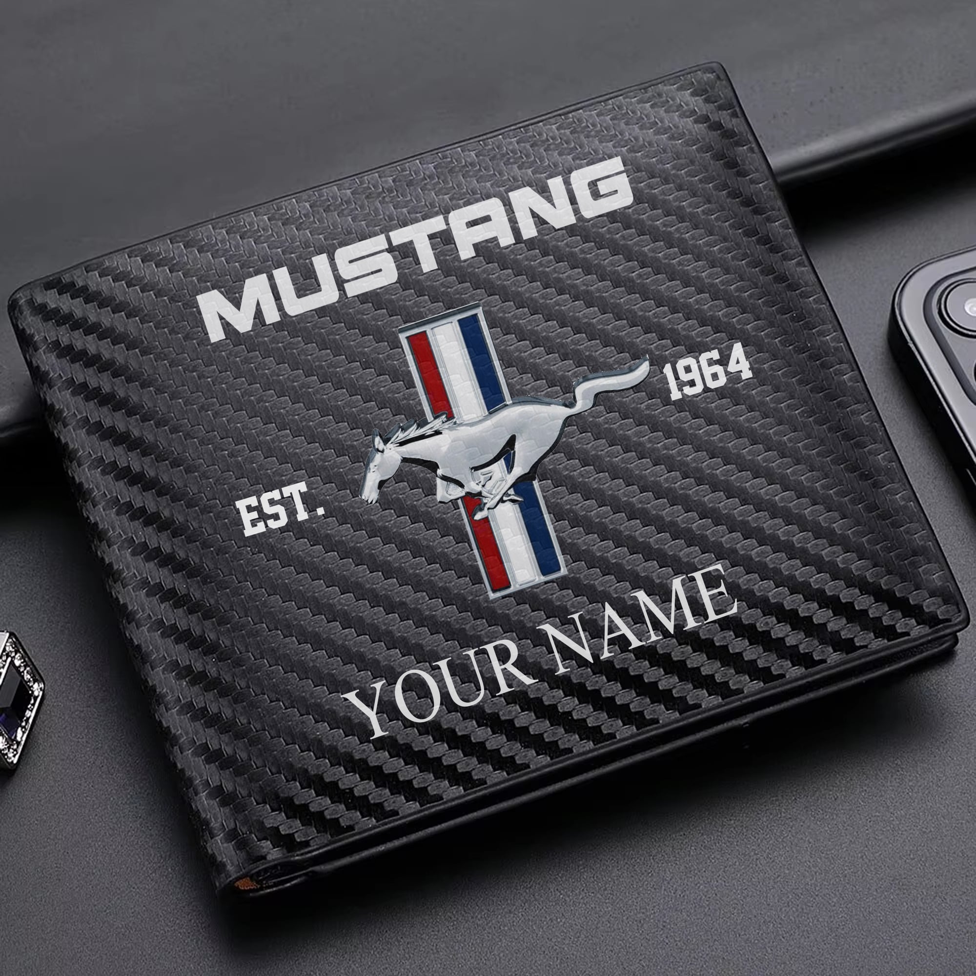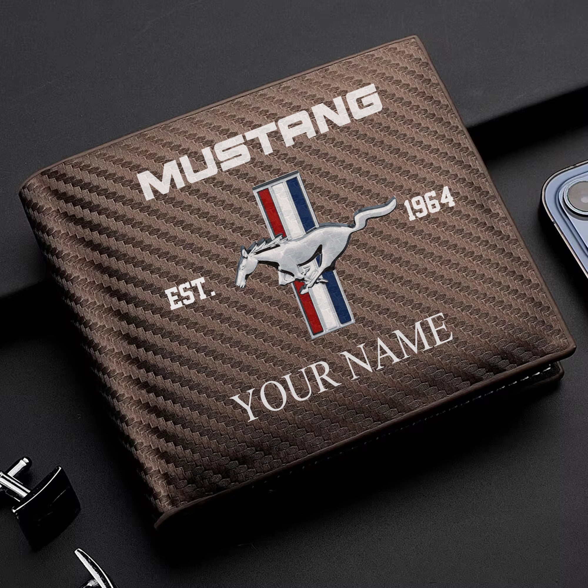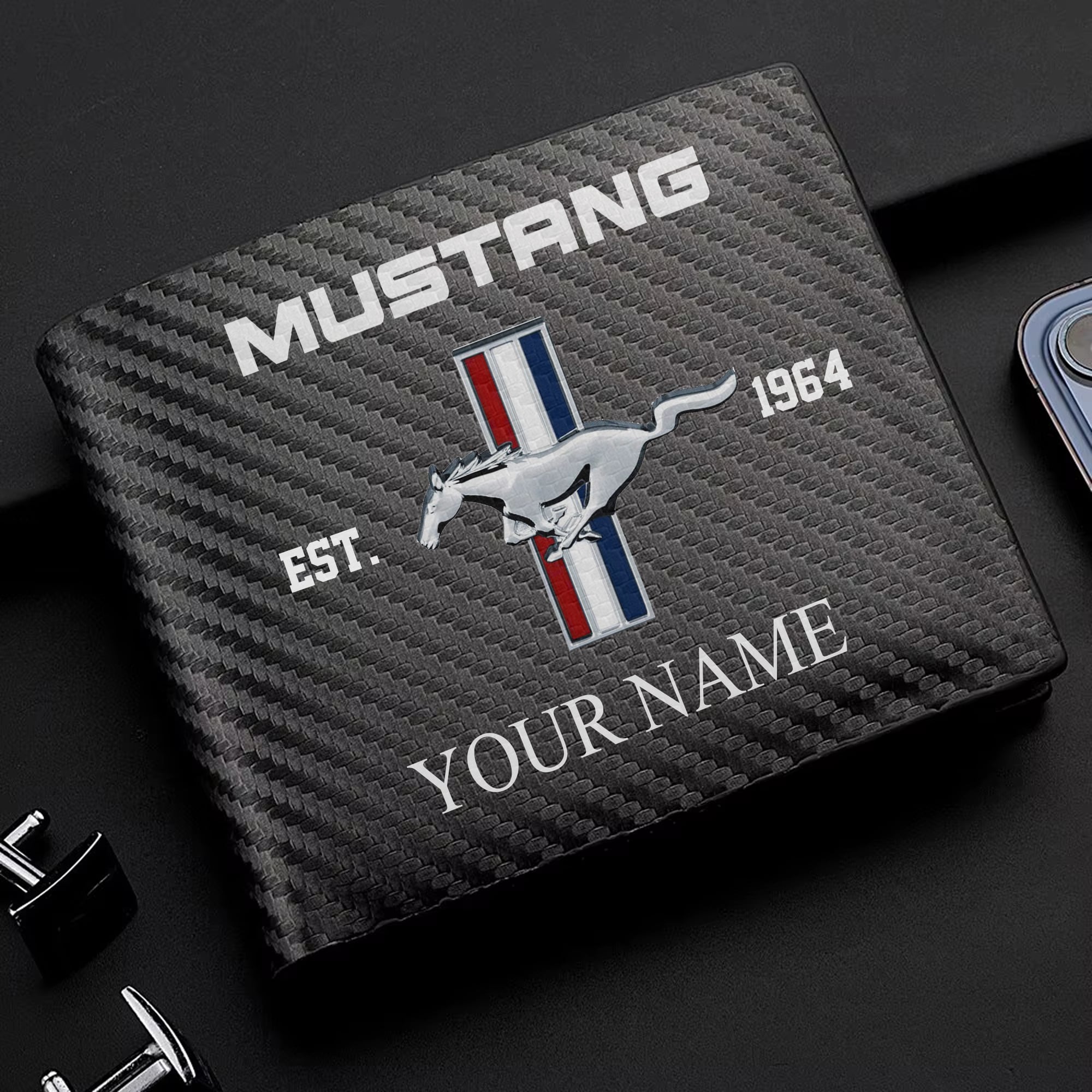 Hi there!! Are you looking at our Mustang Wallet. These Wallets are unique, made with love, and they are perfect accessories for your outfit. The Mustang Emblem on the Wallet makes it a perfect item for any Mustang Lovers.