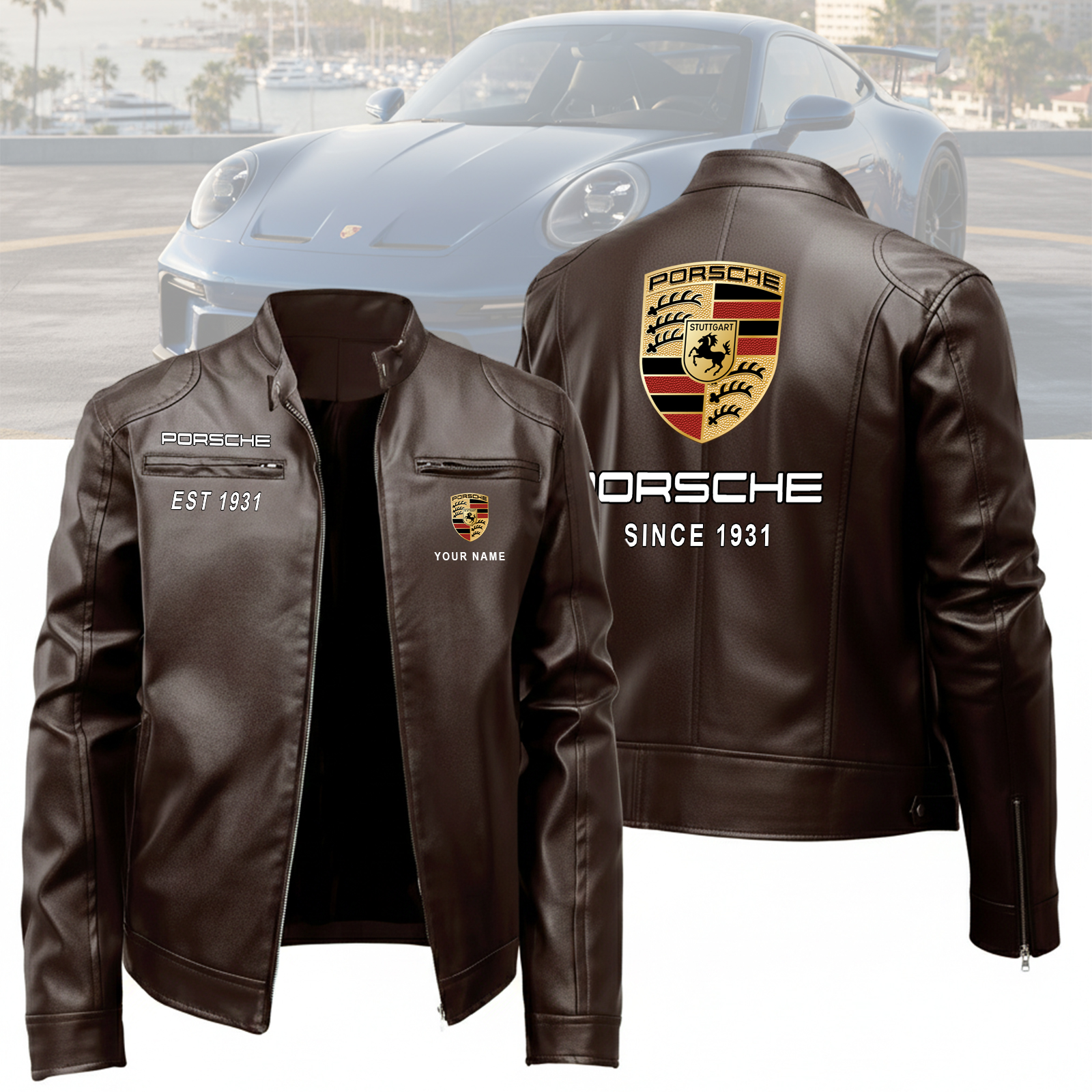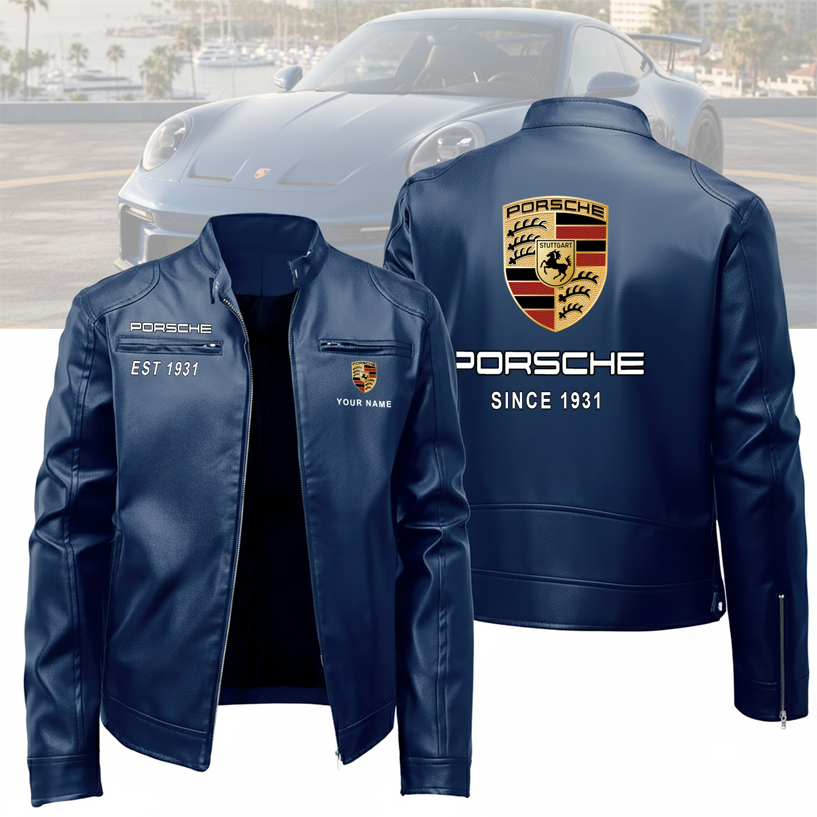 Hi there!! Are you looking at our Porsche Leather Jacket. These Leather Jackets are unique, made with love, and they are perfect accessories for your outfit. The Porsche Emblem on the Leather Jackets makes it a perfect item for any Porsche Lovers.