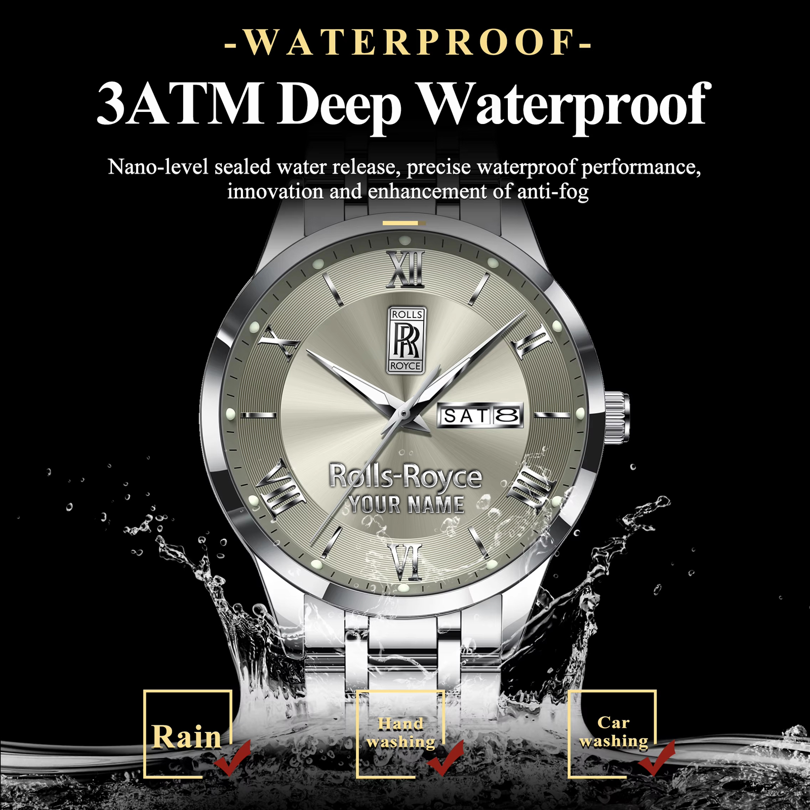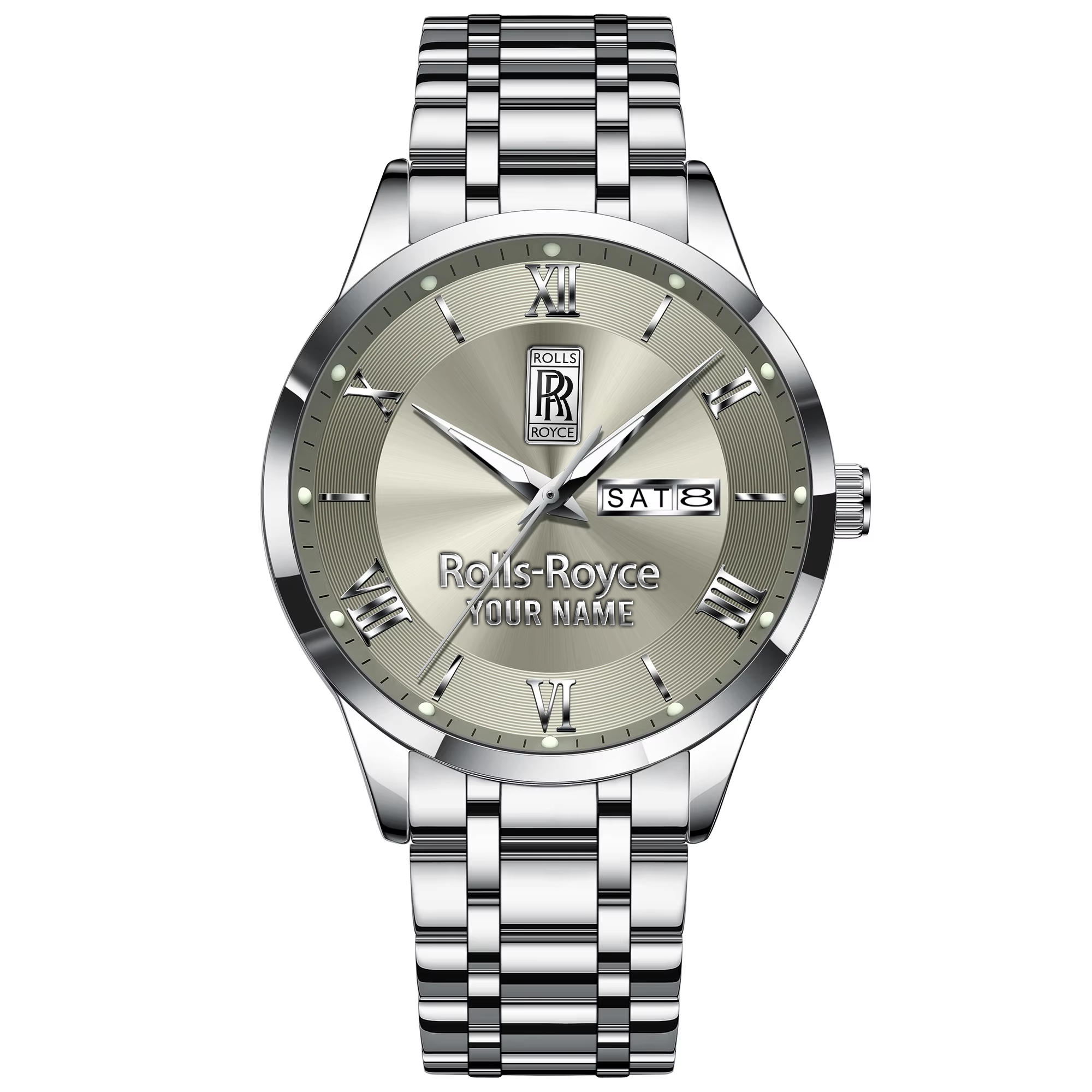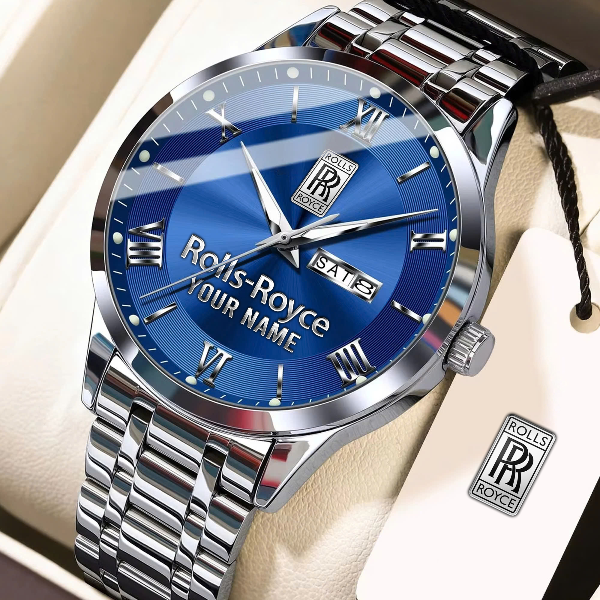 With the launch of the exclusive Made-to-Order service, you can make your watch unique by not only having your special Roll Royces Emblem but also your Name printed on the watch. Elevate your style with our custom watches featuring your favorite car logo. Meticulously crafted for durability and water resistance, these watches are the perfect item for daily use. Discover the ultimate combination of luxury, utility, and personalization!