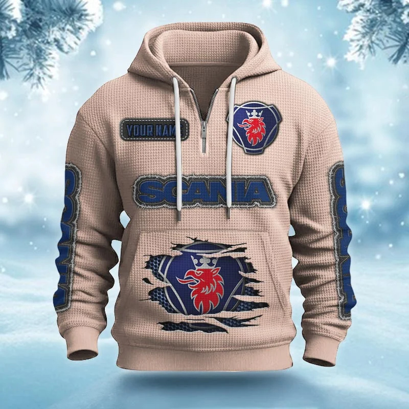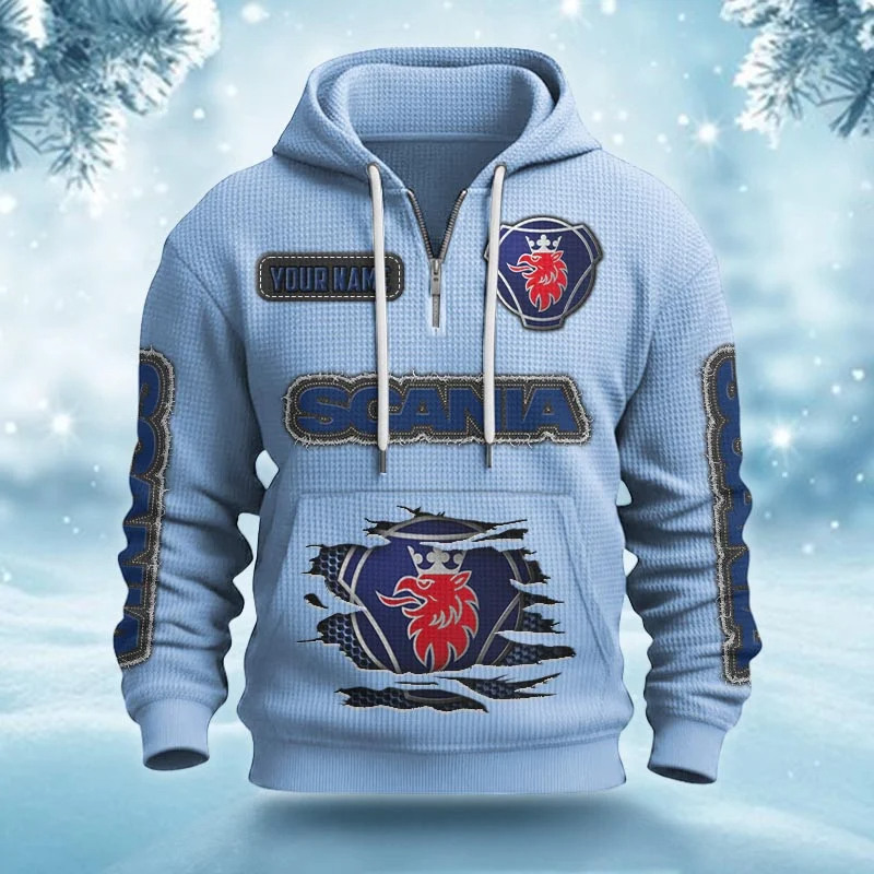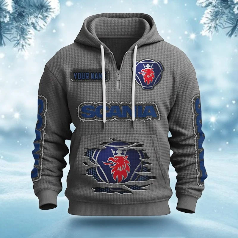 Hi there!! Are you looking at our Scania Half-zip Hoodie. These Half-zip Hoodies are unique, made with love, and they are perfect accessories for your outfit. The Scania Emblem on the Half-zip Hoodie makes it a perfect item for any Scania Lovers.