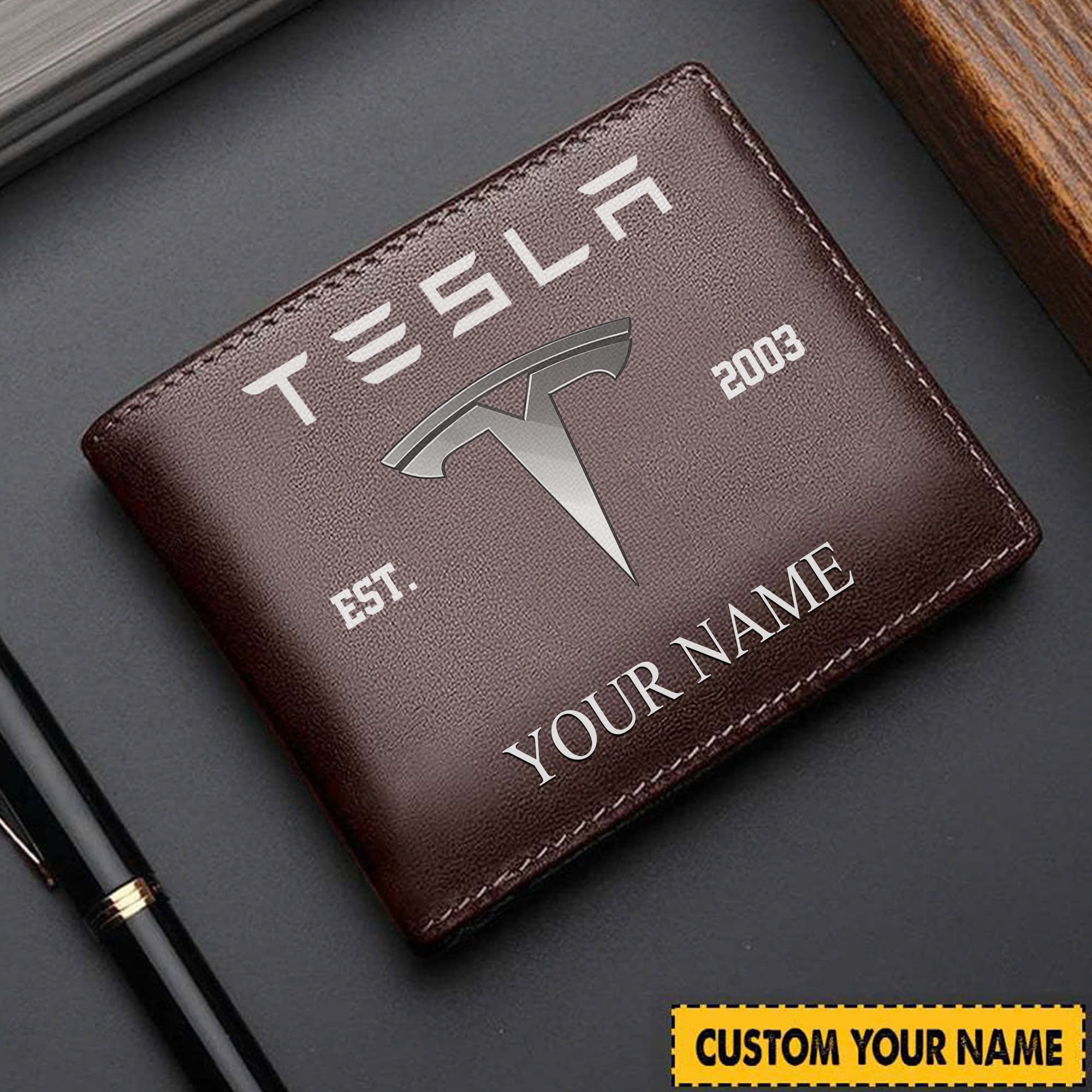 With the launch of the exclusive Made-to-Order service, you can make your Wallet unique by not only having your special Tesla Emblem but also your Name printed on the item. Upgrade your everyday carry with our custom leather wallets, featuring your favorite car emblem. Crafted from soft leather and boasting multiple pockets, these wallets blend style with functionality.