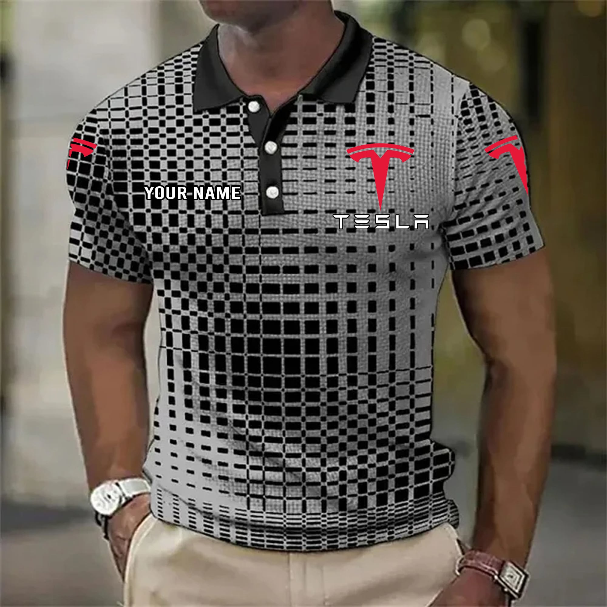 Hi there!! Are you looking at our Tesla Polo Shirts. These Polo Shirts are unique, made with love, and they are perfect accessories for your outfit. The Tesla Emblem on the Shirts makes it a perfect item for any Tesla Lovers.