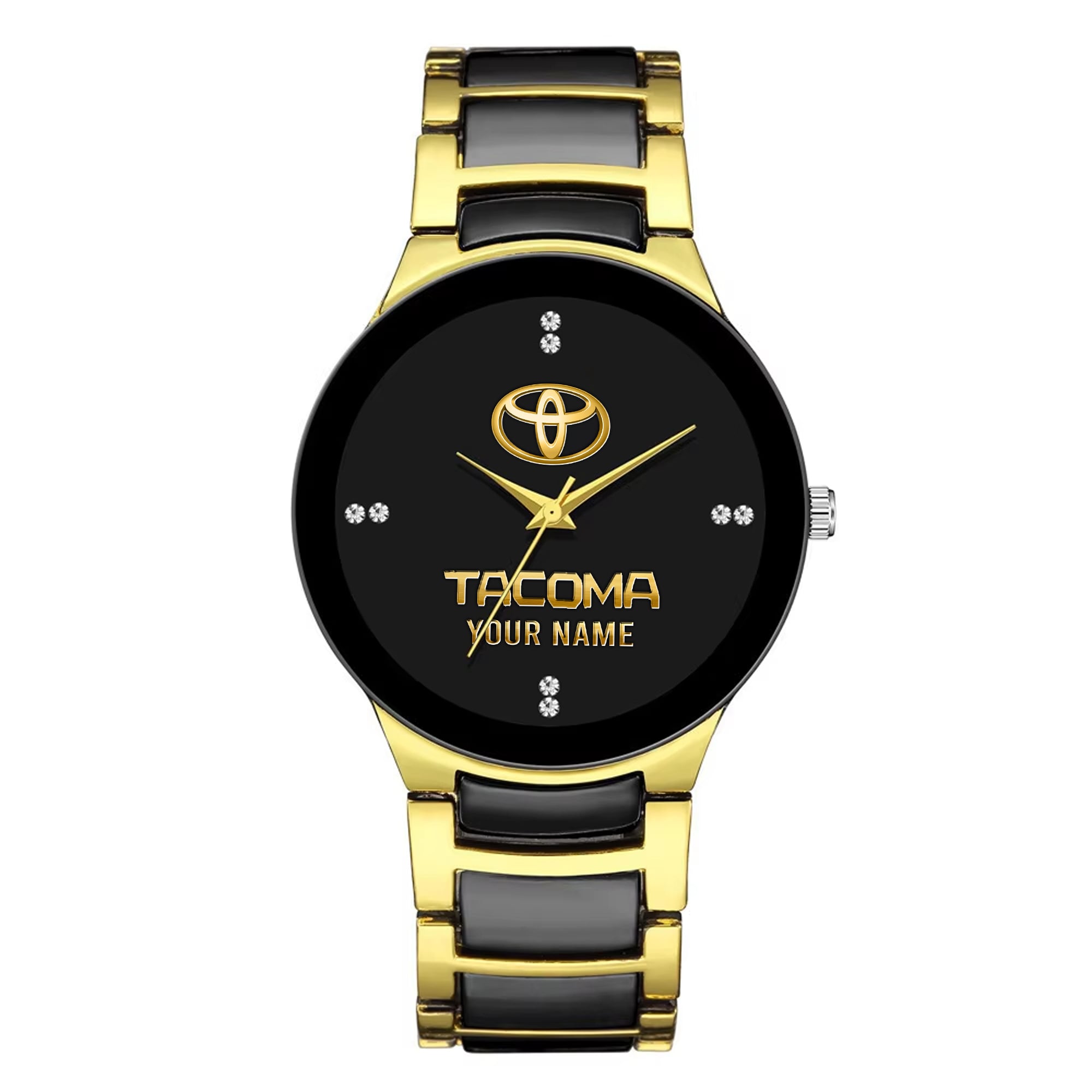 With the launch of the exclusive Made-to-Order service, you can make your watch unique by not only having your special Toyota Tacoma Emblem but also your Name printed on the watch. Elevate your style with our custom watches featuring your favorite car logo. Meticulously crafted for durability and water resistance, these watches are the perfect item for daily use. Discover the ultimate combination of luxury, utility, and personalization!