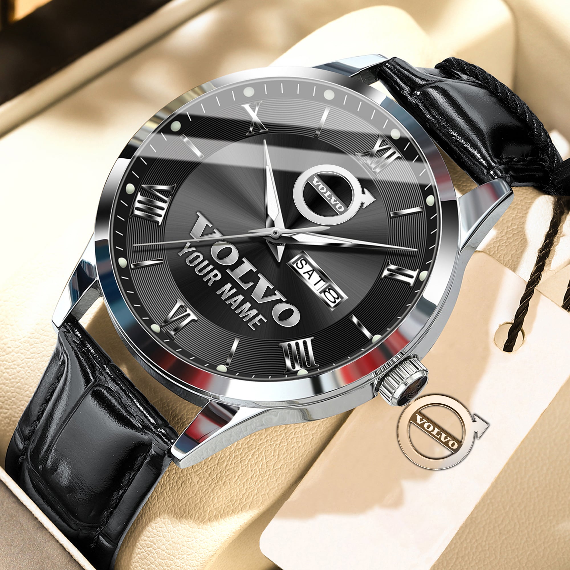 Volvo Custom Name Elegant Fashion Design Leather Men Watch VS86A